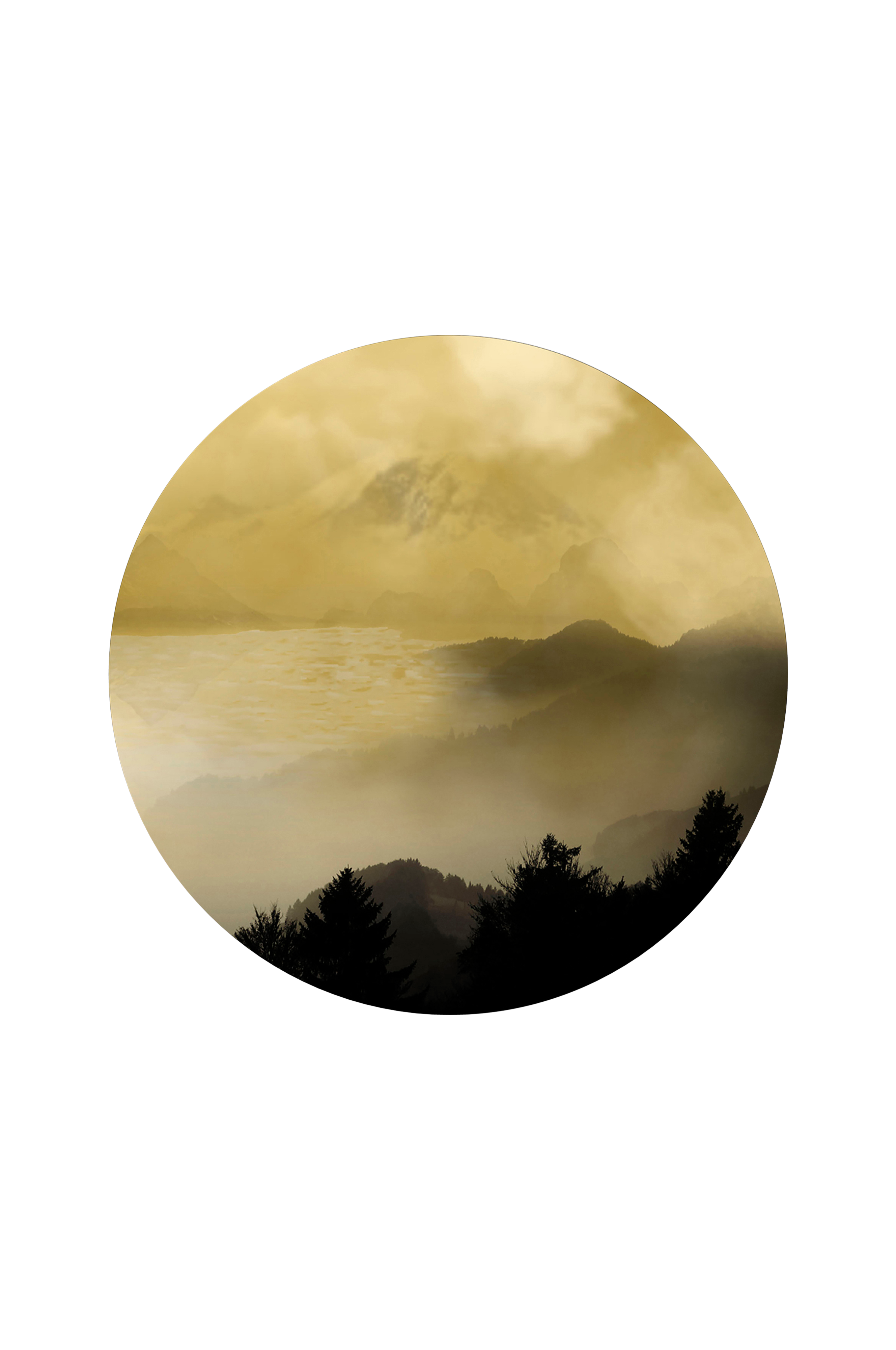 Bilde Holy land 2 fra Malerifabrikken. Trykk på rund MDF-plate. Når bildet henger på veggen gjør profilen på platen at fronten «svever» ca. 0,5 cm fra veggen.