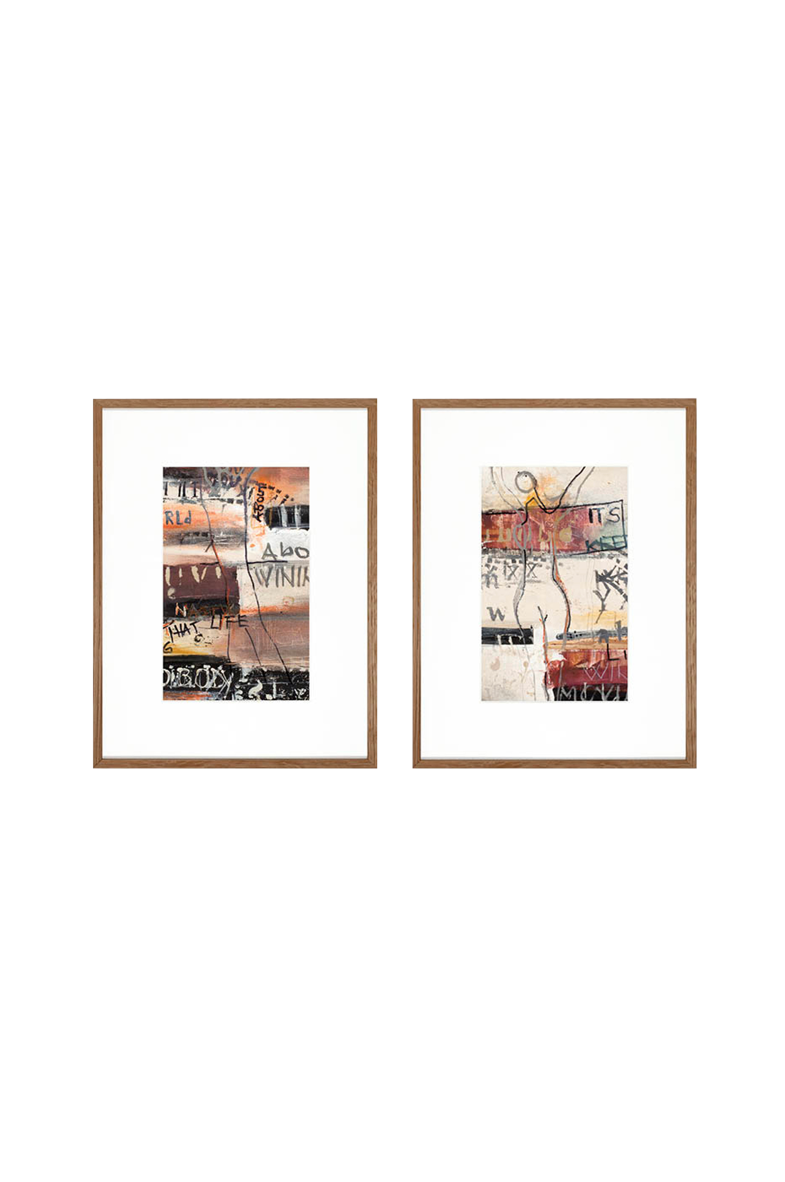 Håndmalt postersett. Innglasset med eikeramme.