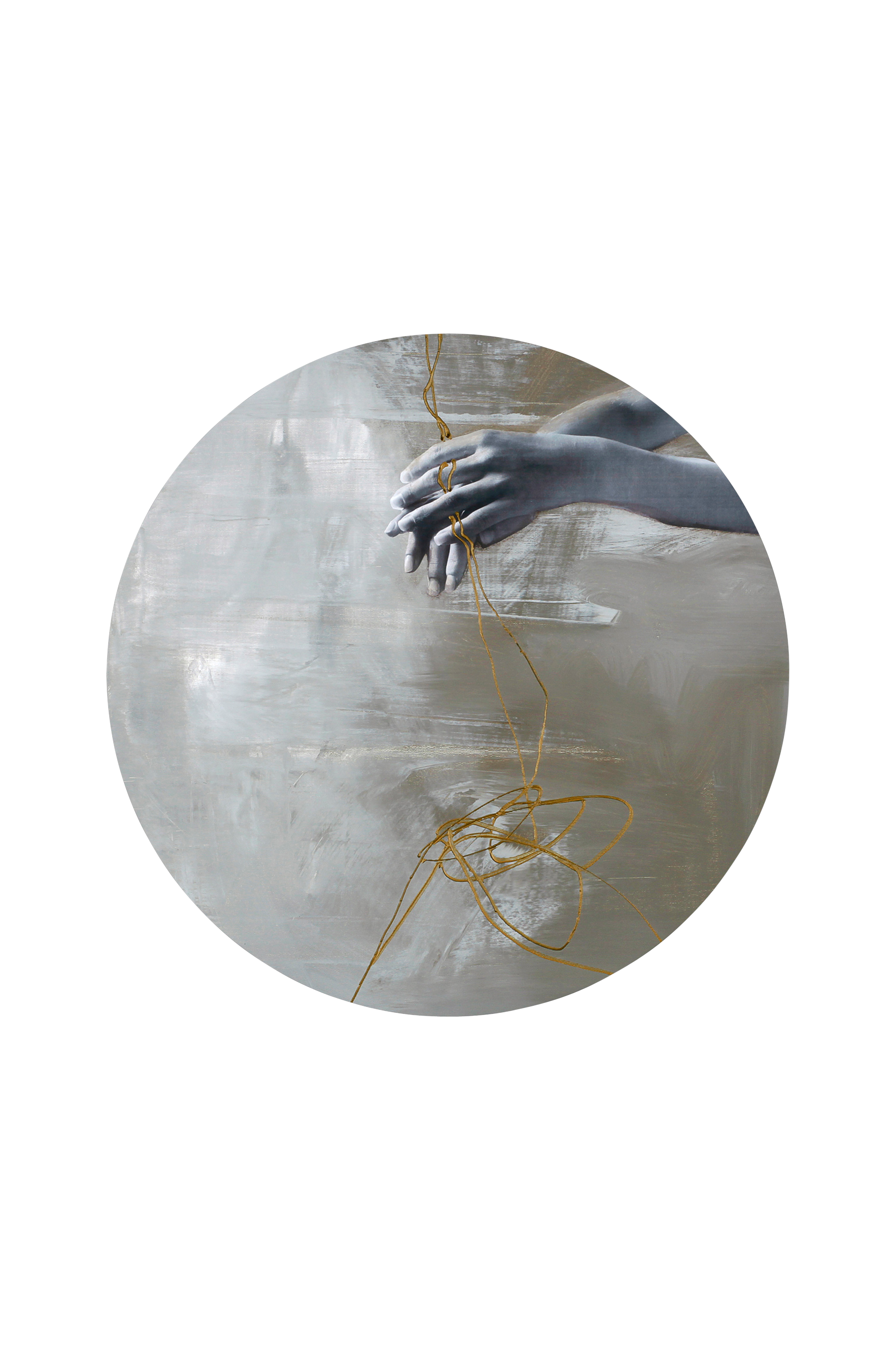Bilde Playing Line 2 fra Malerifabrikken. Trykk på rund MDF-plate. Når bildet henger på veggen gjør profilen på platen at fronten «svever» ca. 0,5 cm fra veggen.