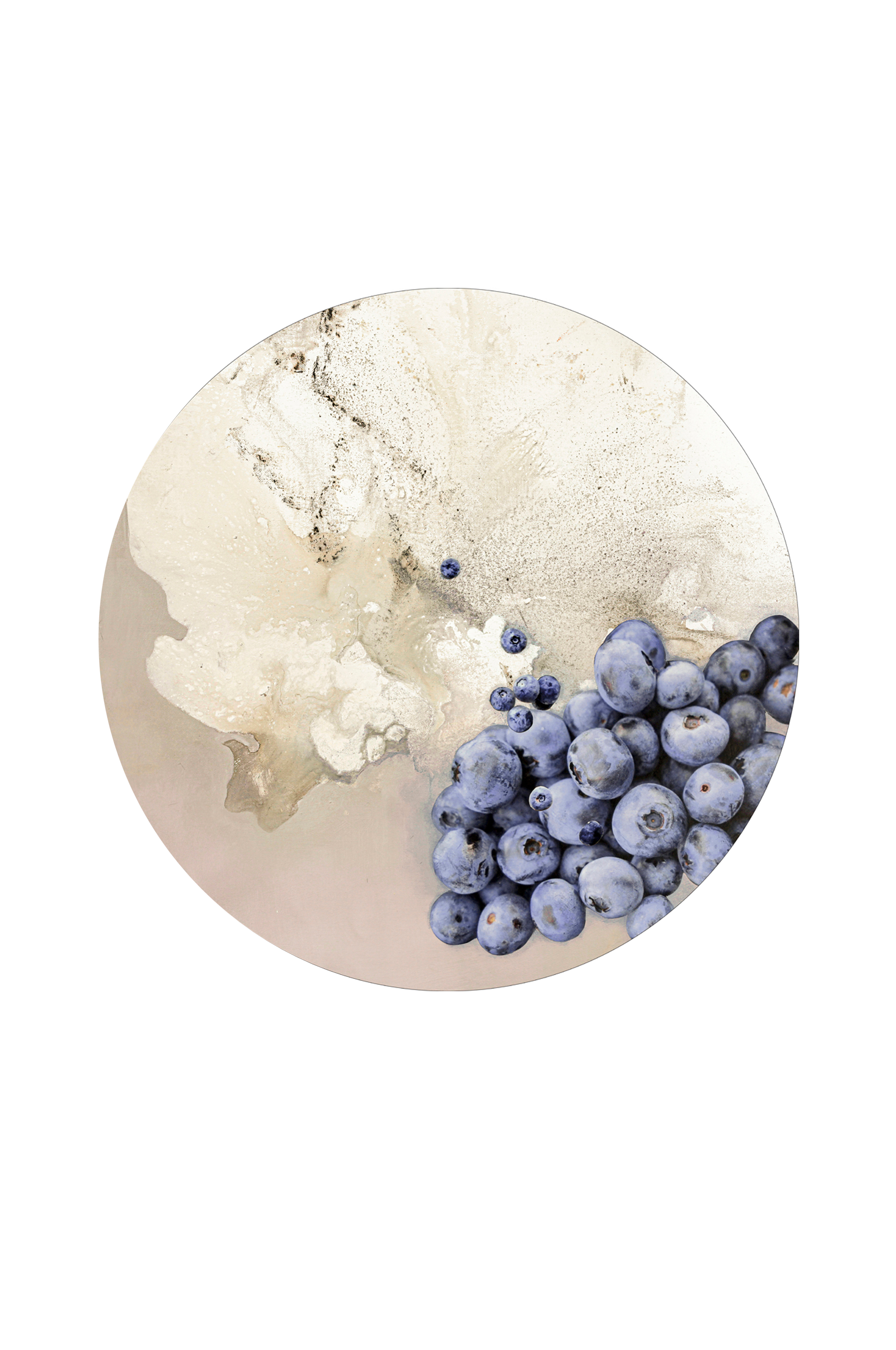Bilde fra Malerifabrikken. Trykk på rund MDF-plate. Når bildet henger på veggen gjør profilen på platen at fronten «svever» ca. 0,5 cm fra veggen.