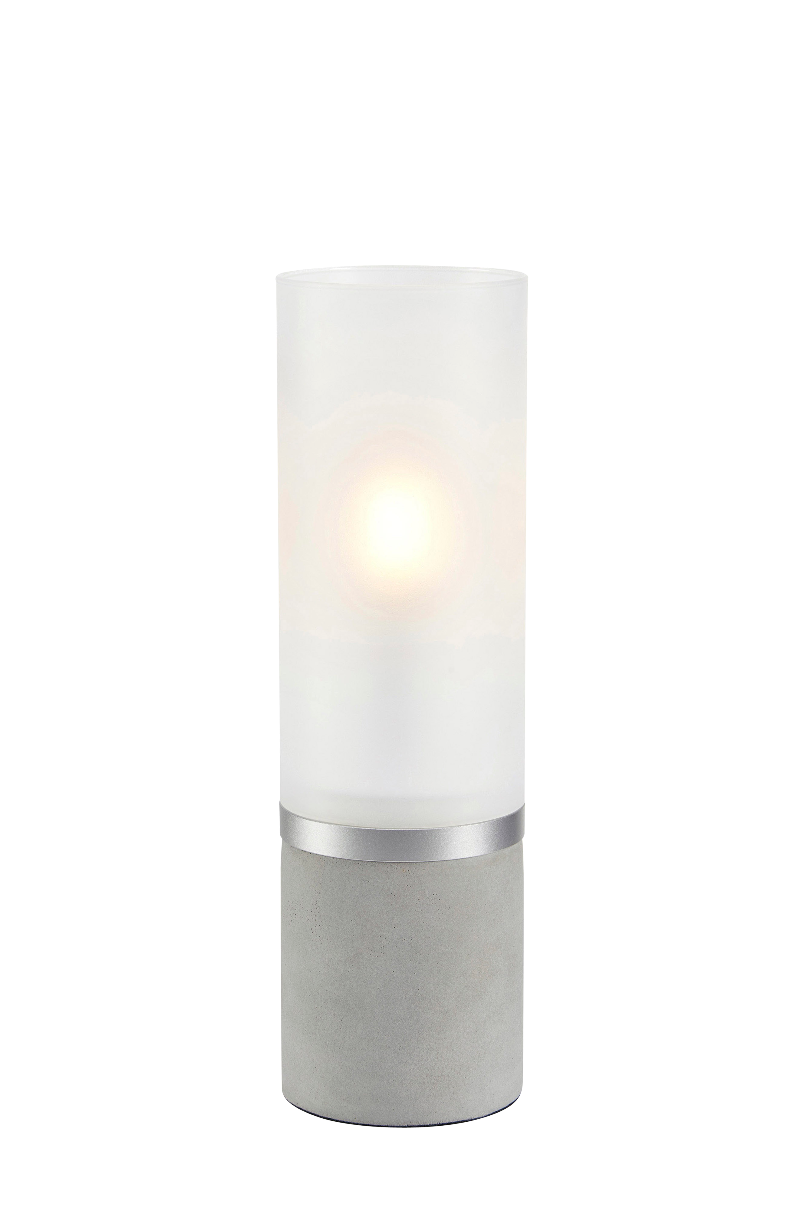 MOLO bordlampe fra Markslöjd. Sokkel i betong og skjerm i sylinderformet frostet glass. 2 m svart tekstilkabel med bryter på ledningen og støpsel. Høyde 30 cm. 1xE14, maks 40 W. Lyspære er ikke inkludert.