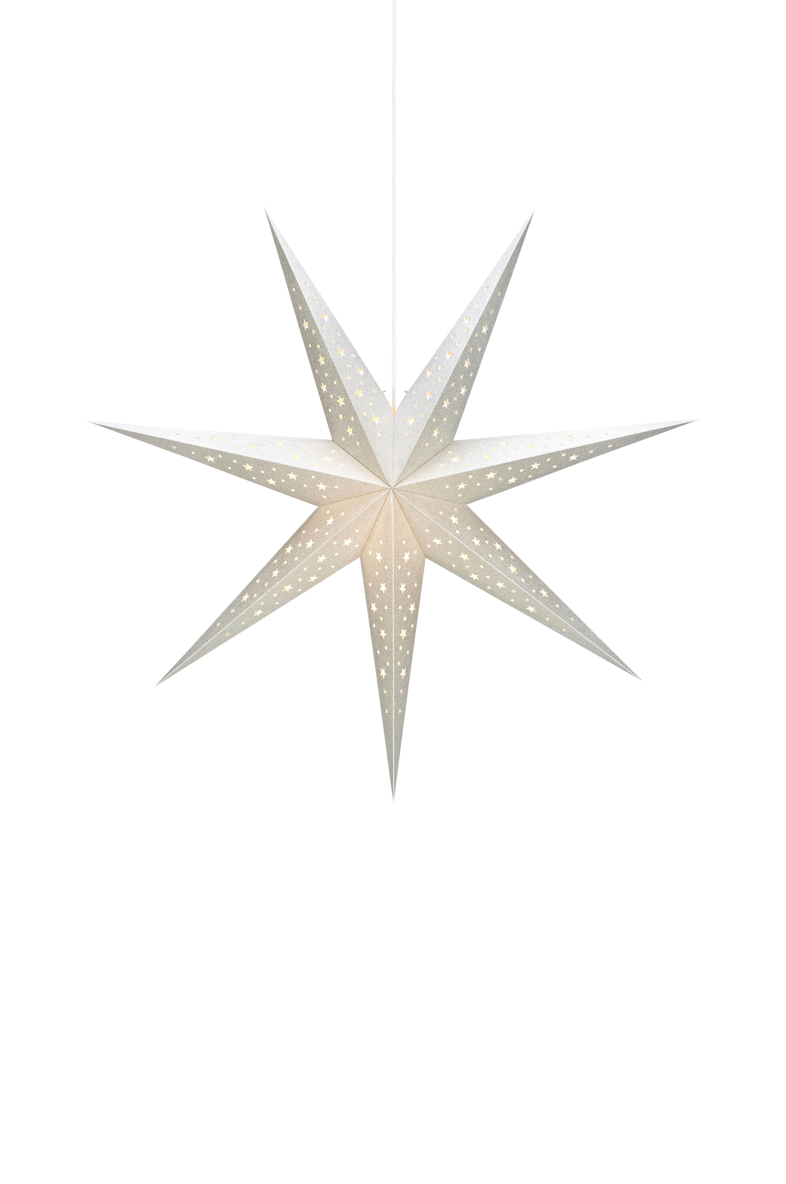 Solvalla Julestjerne. Ø 75 cm, dybde 17 cm. E14 sokkel, maks. 25 W. Ledning 3,5 m med strømbryter.