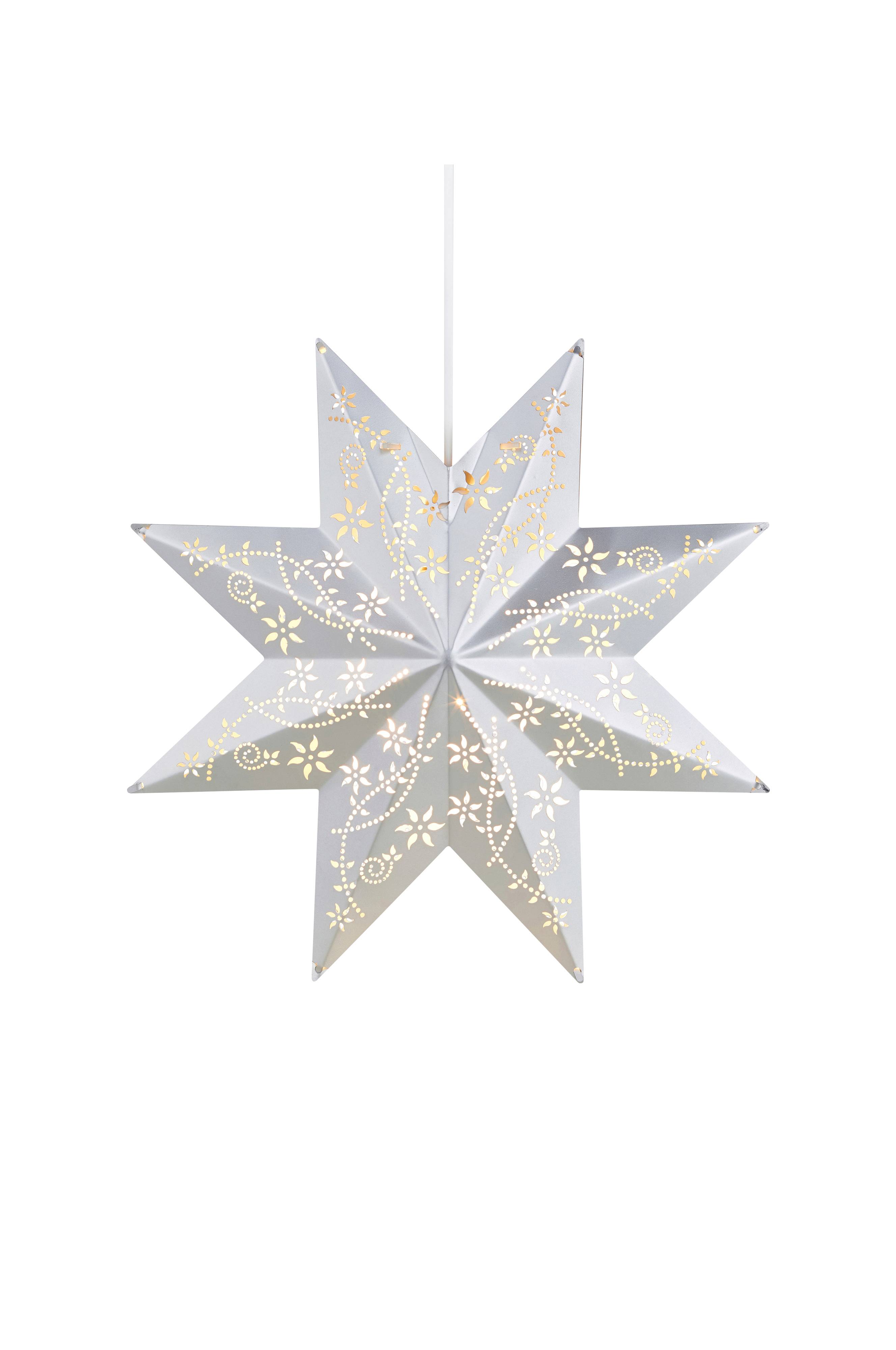 Silva pendelstjerne fra Markslöjd. Base i plast og skjerm i papir. 1xE14 sokkel. Maks 25 W. 3,5 m ledning i plast med strømbryter på ledningen og støpsel. Lyspære er ikke inkludert.