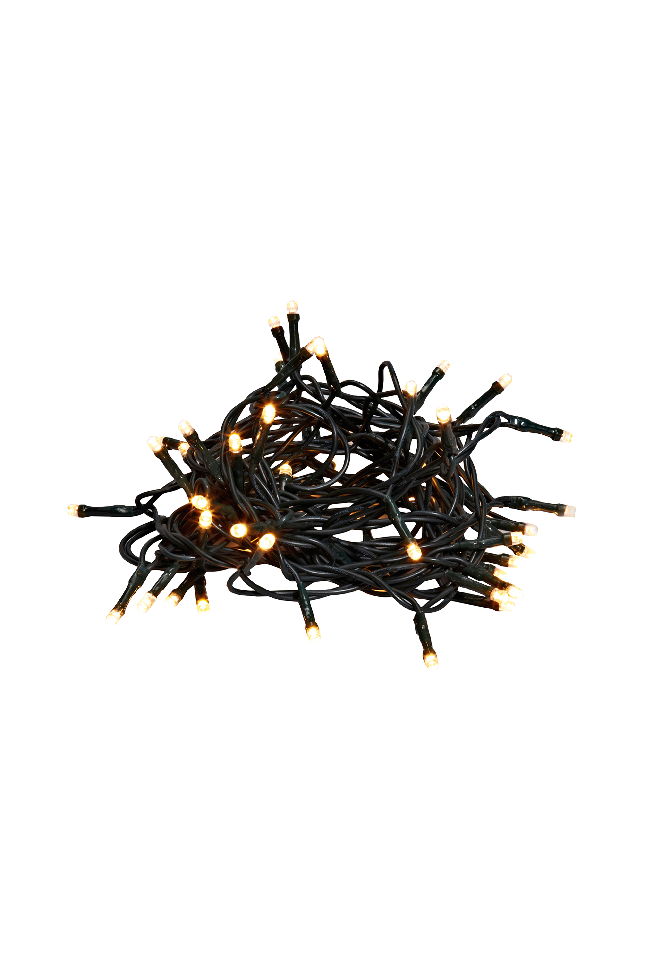 Sken lyslenke fra Markslöjd. 120 x integrerte LED-lyskilder i varmhvitt lys. Maks 3,6W. 17 m lang ledning i gummi; 12 m med lys og 5 m startledning. Støpsel (plug in-transformator). Godkjent for utendørs bruk. IP44