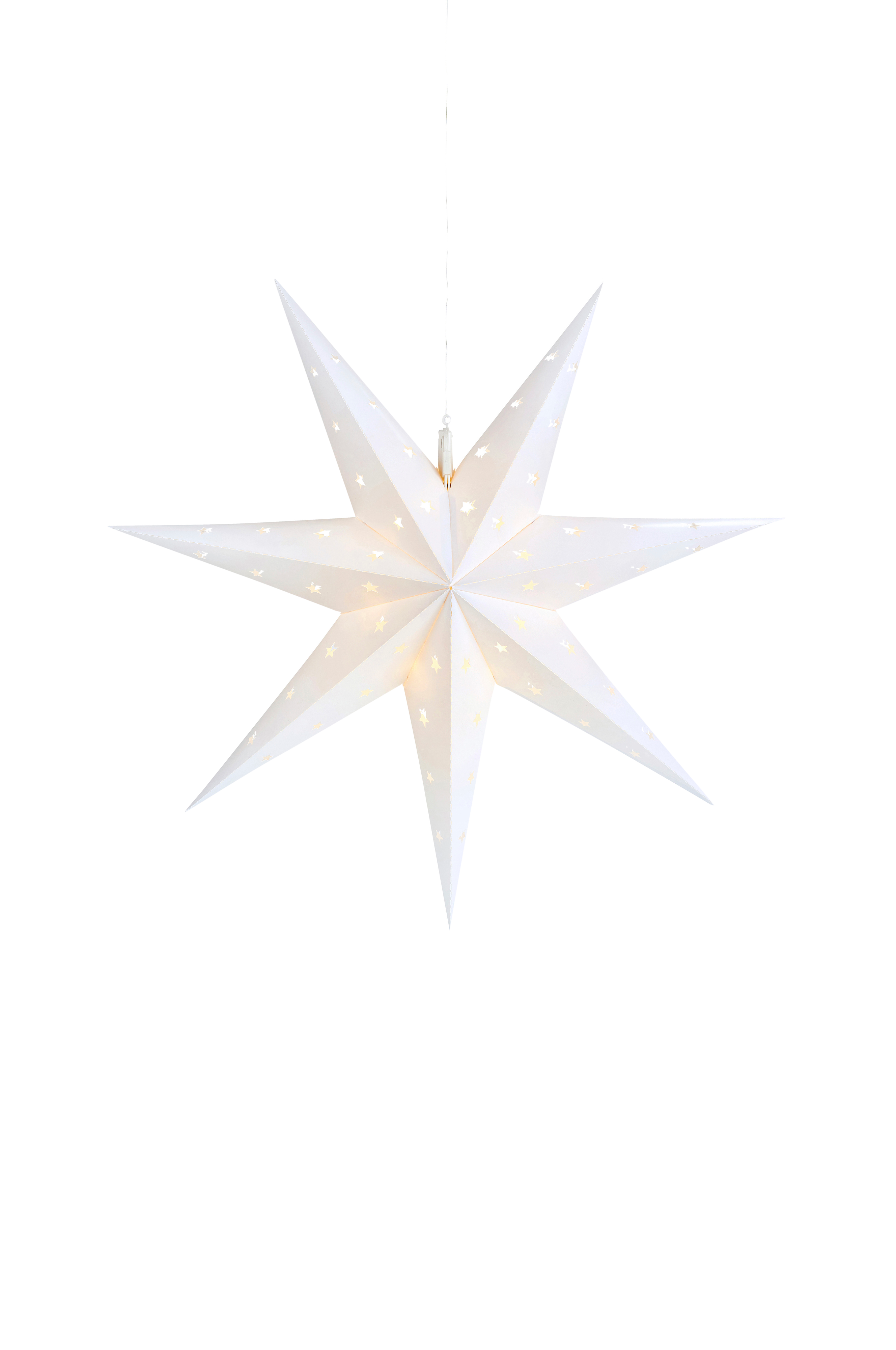 Ultra Stjerne. Av plast. Ø 60 cm. Med transformator IP44. 12 LED-lys. 5 meter tilkoblingsledning i transparent farge.