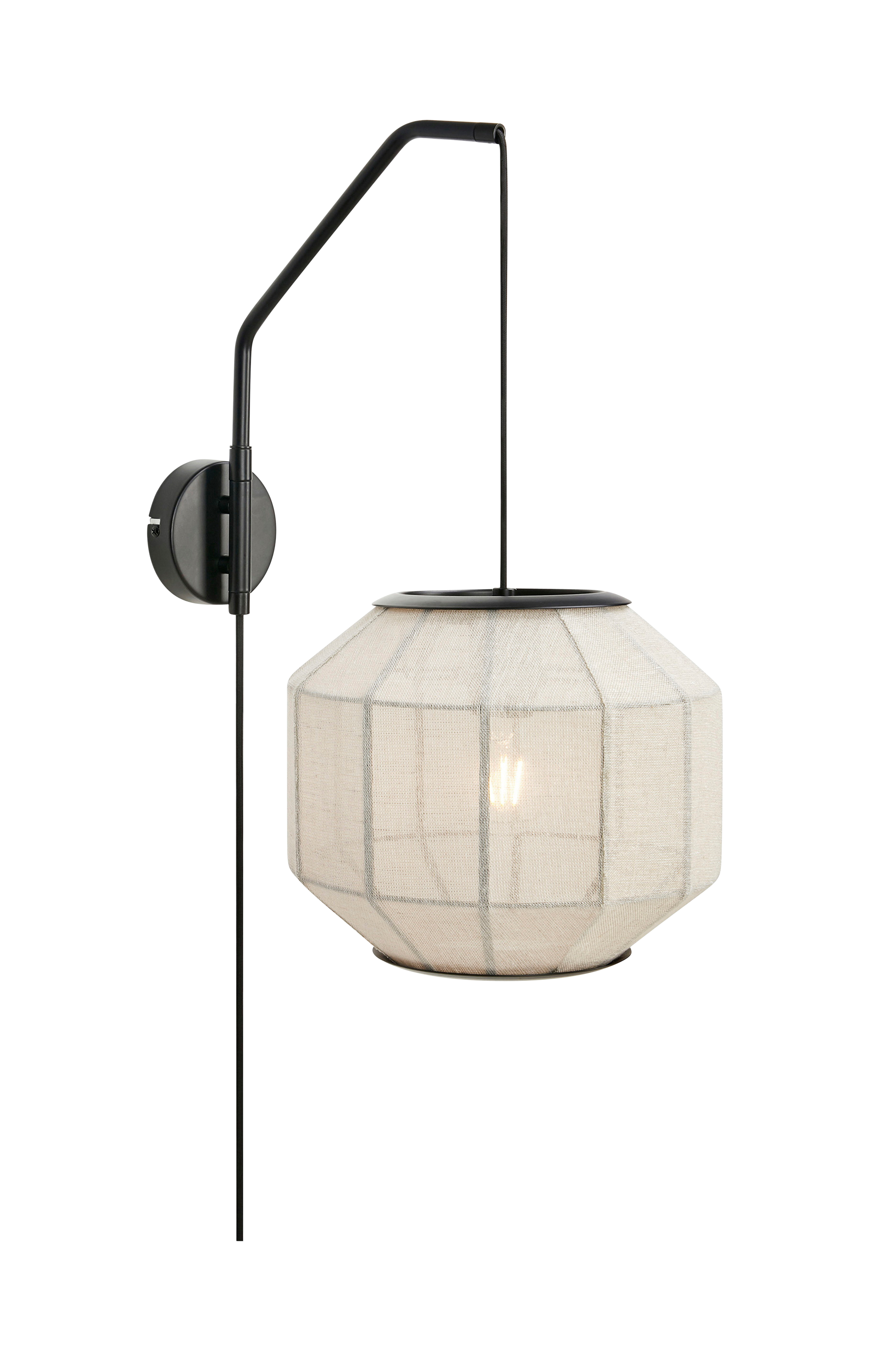 Asuka vegglampe fra markslöjd. Skjerm i lin med ramme i metall. Veggplate og arm i metall. 2 m tekstilkabel med bryter og veggplugg. Diameter 30 cm. Justerbar høyde. Monteres med veggbrakett. 1xe27, maks 40w. Lyskilde ikke inkludert.