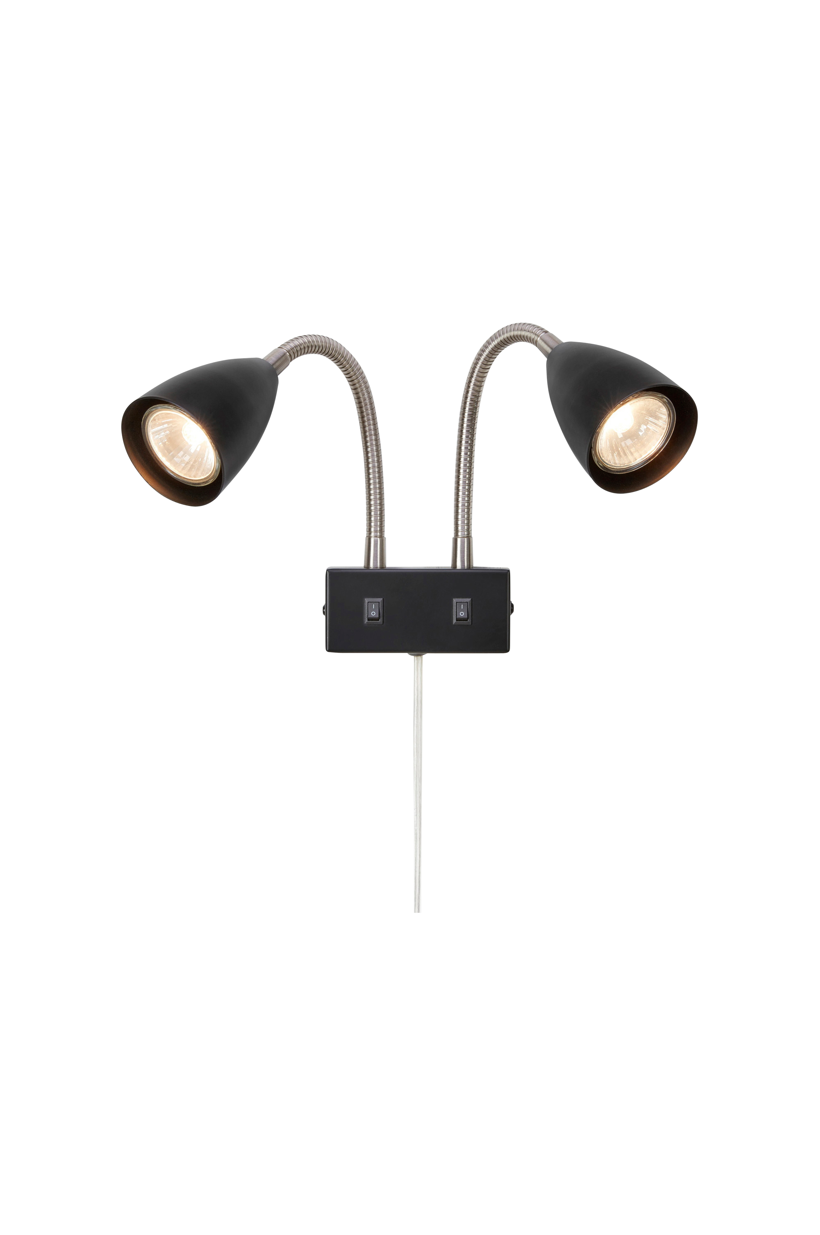 Ciro vegglampe fra markslöjd. Veggplate og skjerm i metall, med bøyelige armer i satinert nikkel. 2 m pvc-kabel og veggplugg. Innebygd bryter på veggplaten. Tilkoblingsboks på innsiden av veggplaten for enkel fjerning av kabel og endring til fast installasjon. Monteres med veggbrakett. 1xgu10, maks 7w led. Klasse ii. Lyskilder ikke inkludert.