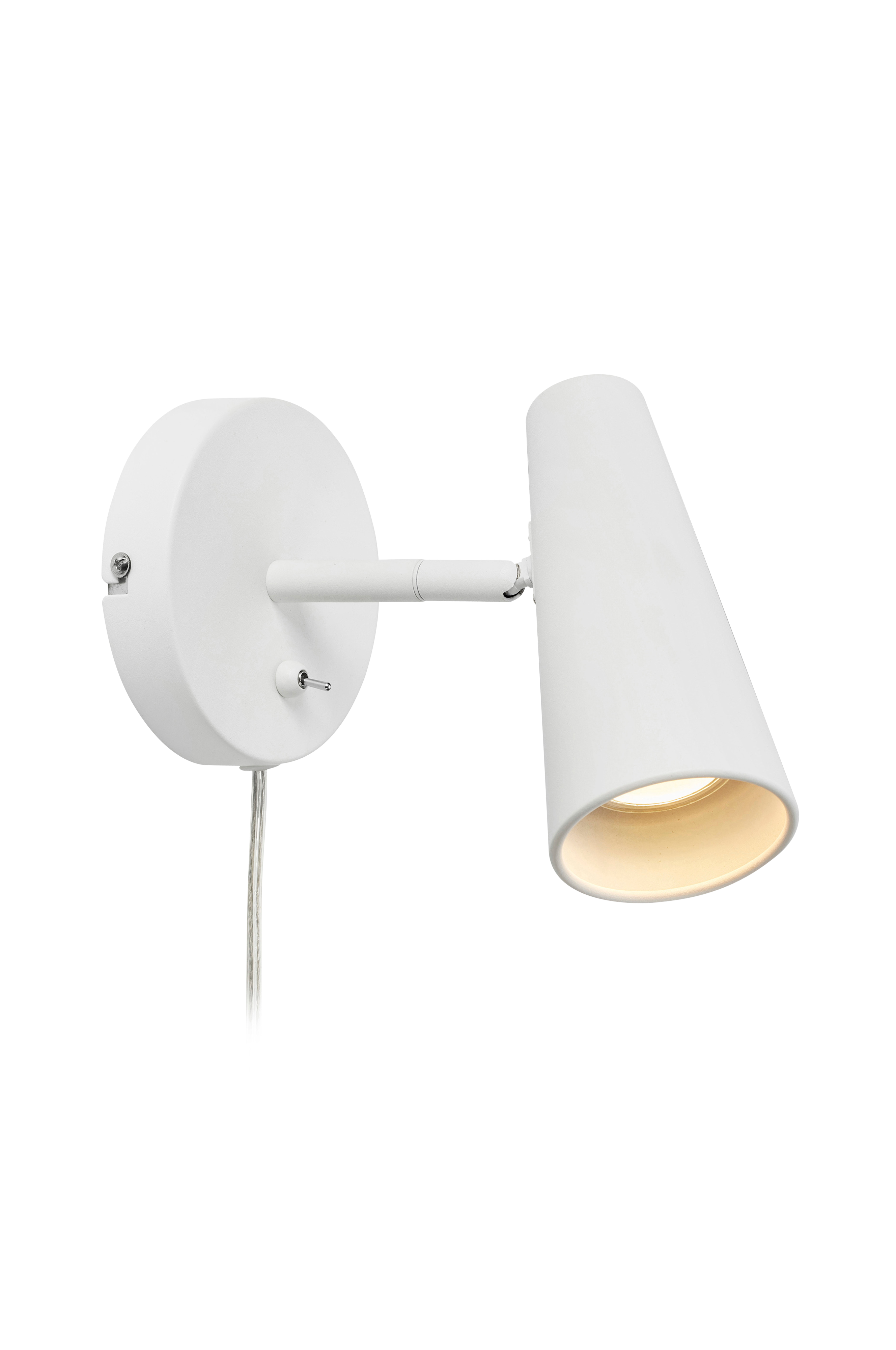 Crest vegglampe i metall med regulerbar skjerm. 2 meter transparent ledning i plast, med bryter på veggplaten, og støpsel. Monteres med brakett. Maks 1 x 7W. GU10-sokkel. Lyspære er ikke inkludert.