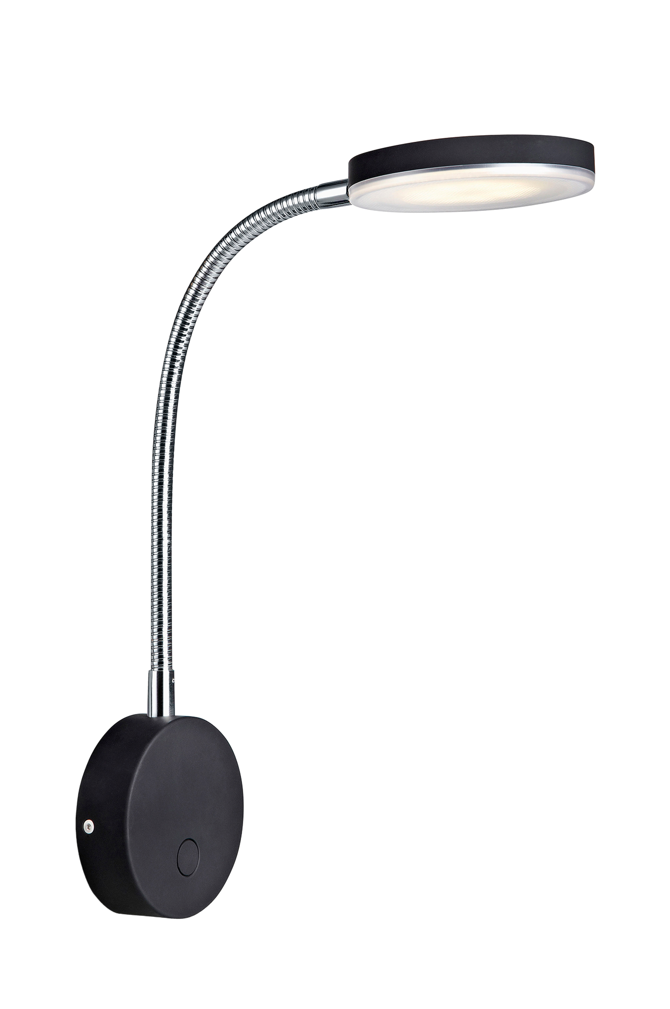 Flex vegglampe fra Markslöjd. Justerbart lampehode. Strømbryter på veggplaten. 5W integrert LED, energiklasse A+ Lengde 10, bredde 17, høyde 40 cm.