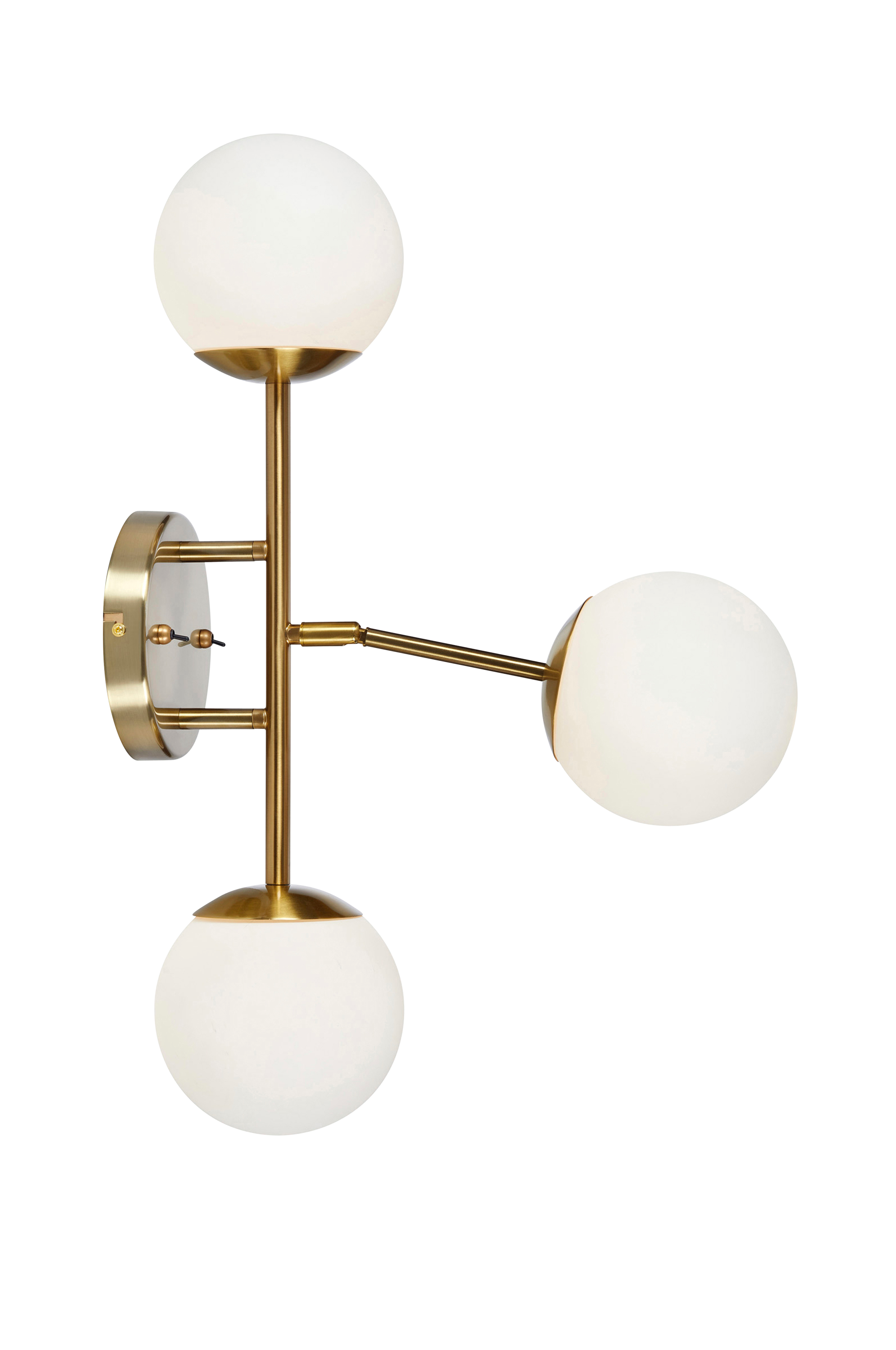 Vegglampen Trinity fra Markslöjd har base i metall og skjermer i glass. Den har en justerbar arm og monteres med brakett. Vegglampen har en 200 cm ledning i plast, bryter på veggplaten og stikkontakt. Lyspærer er ikke inkludert.