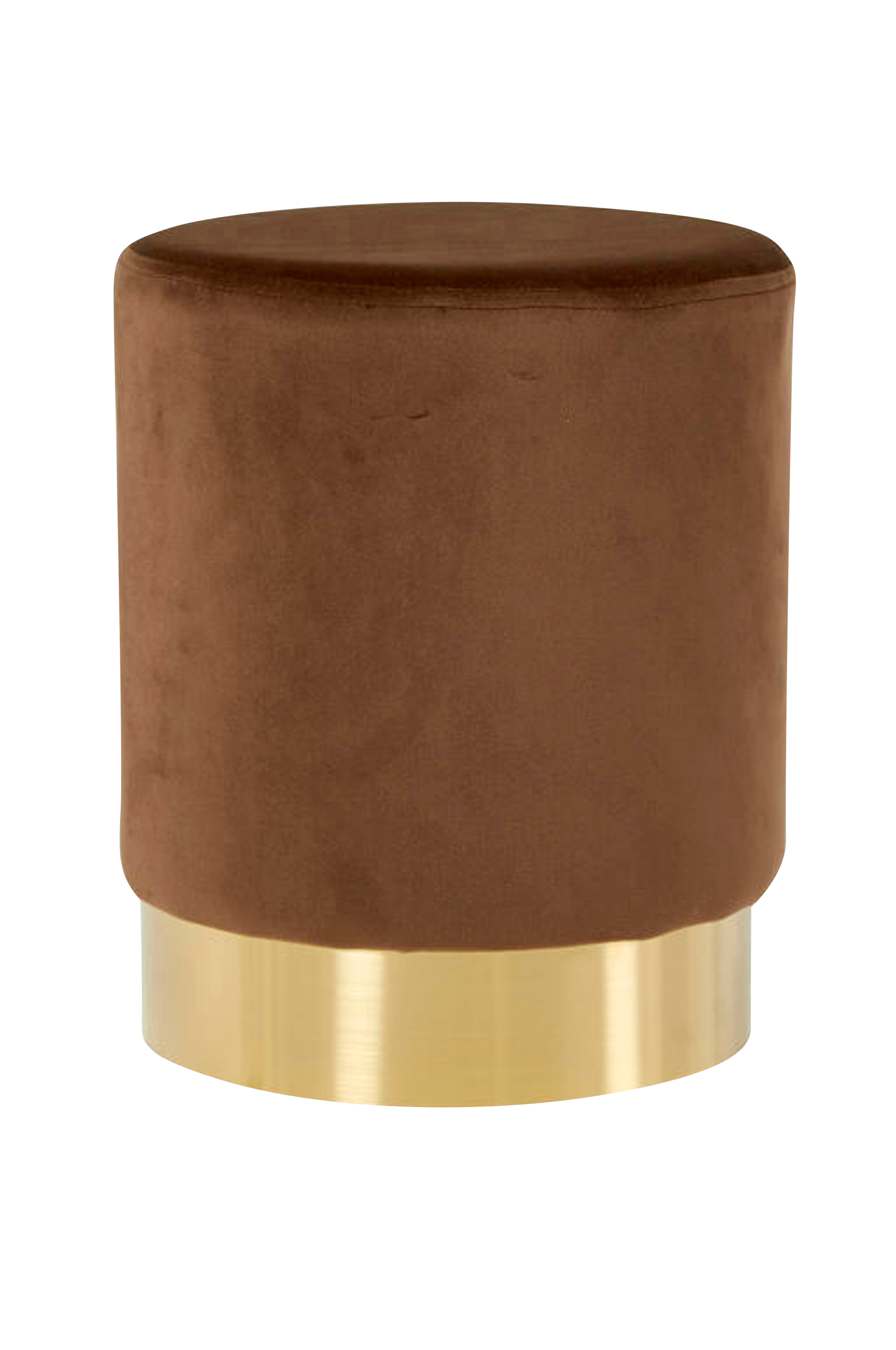 Puff i brun velur og med gullkant