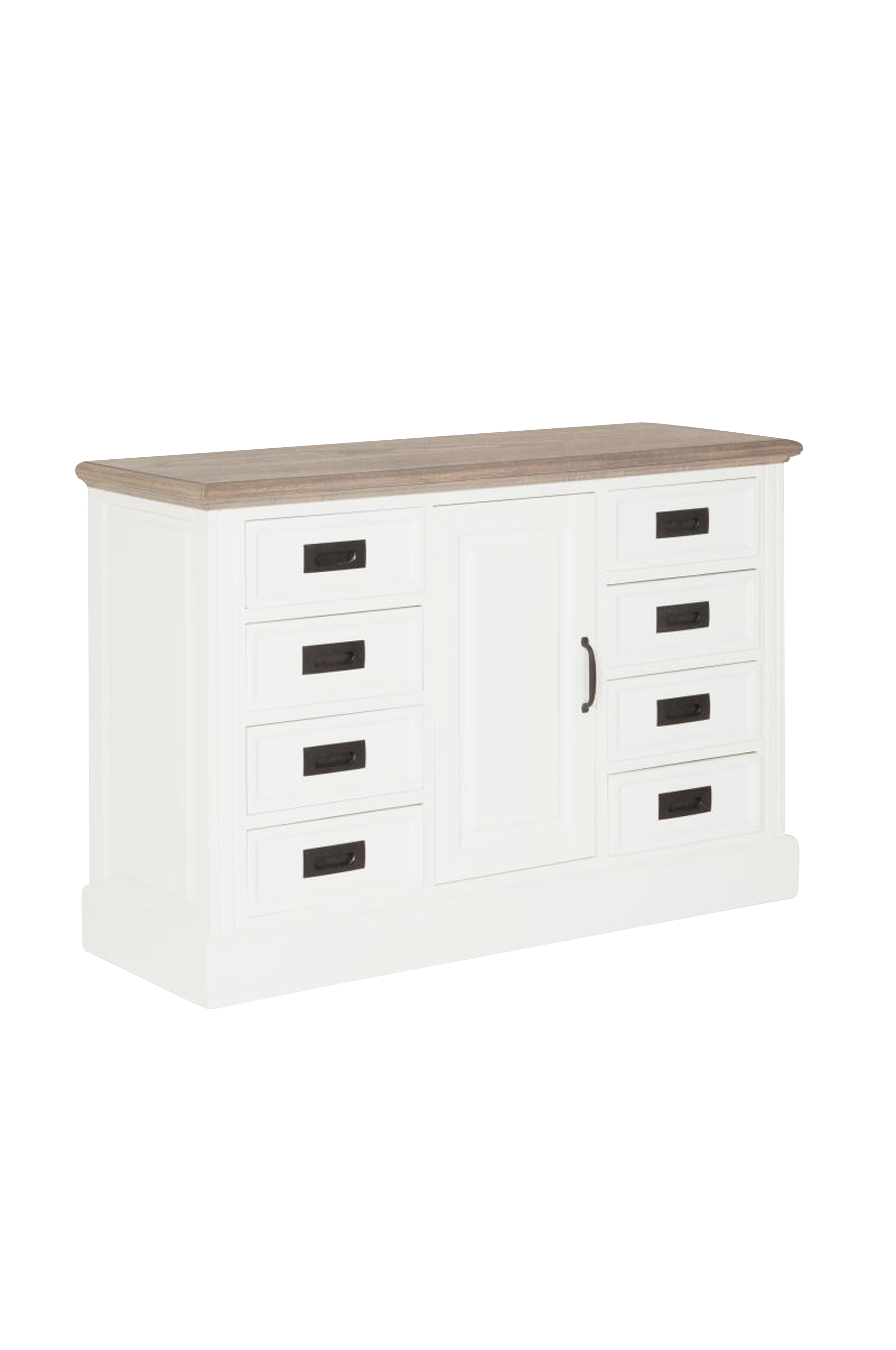 Malou er en vakker antikklignende serie i mange deler. Skjenken har 8 skuffer, en dør i midten og en fin antikklignende topp.