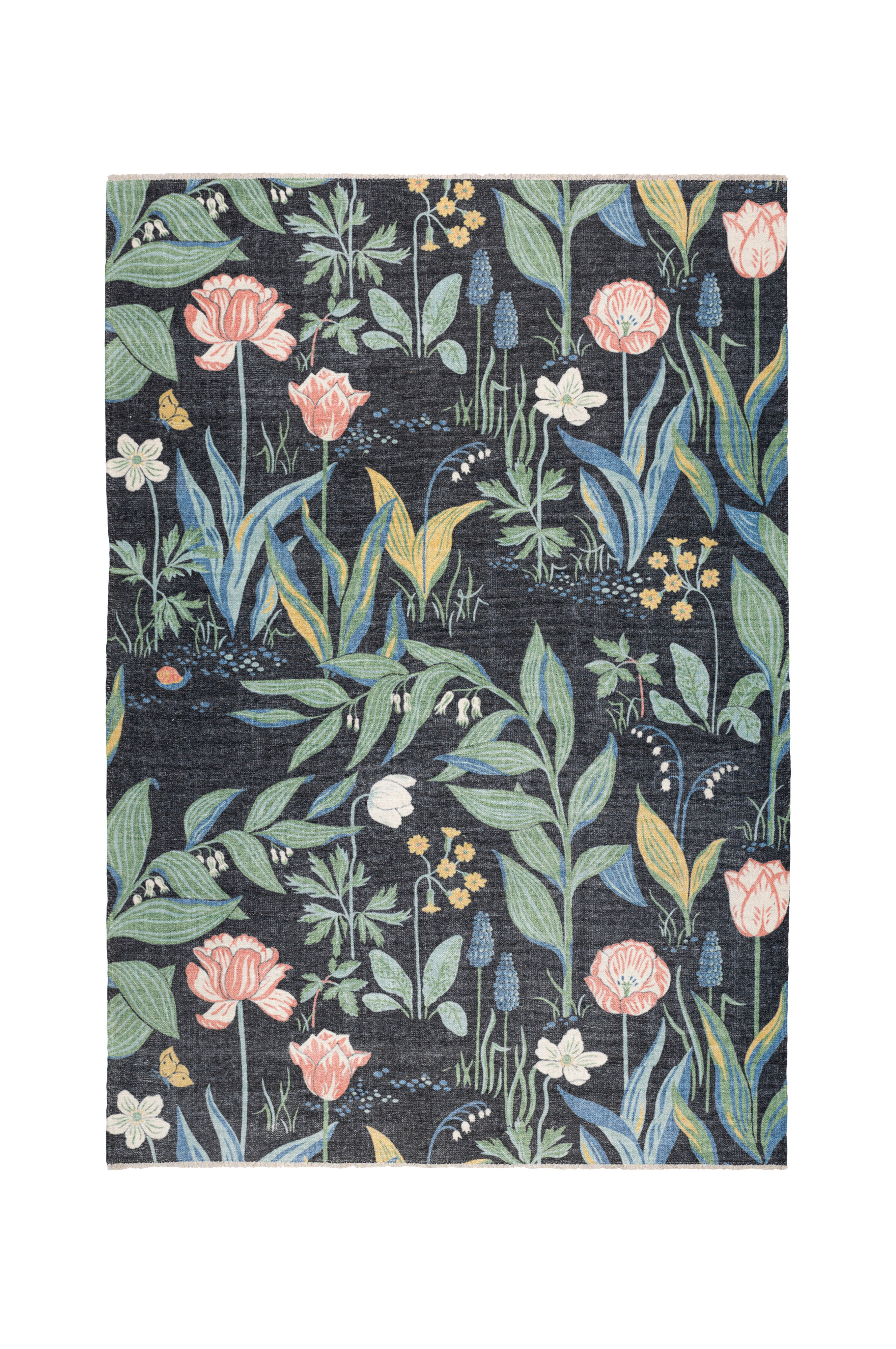 Vakkert mønstrete teppe som minner om en sommereng. Mykt, glattvevd teppe.