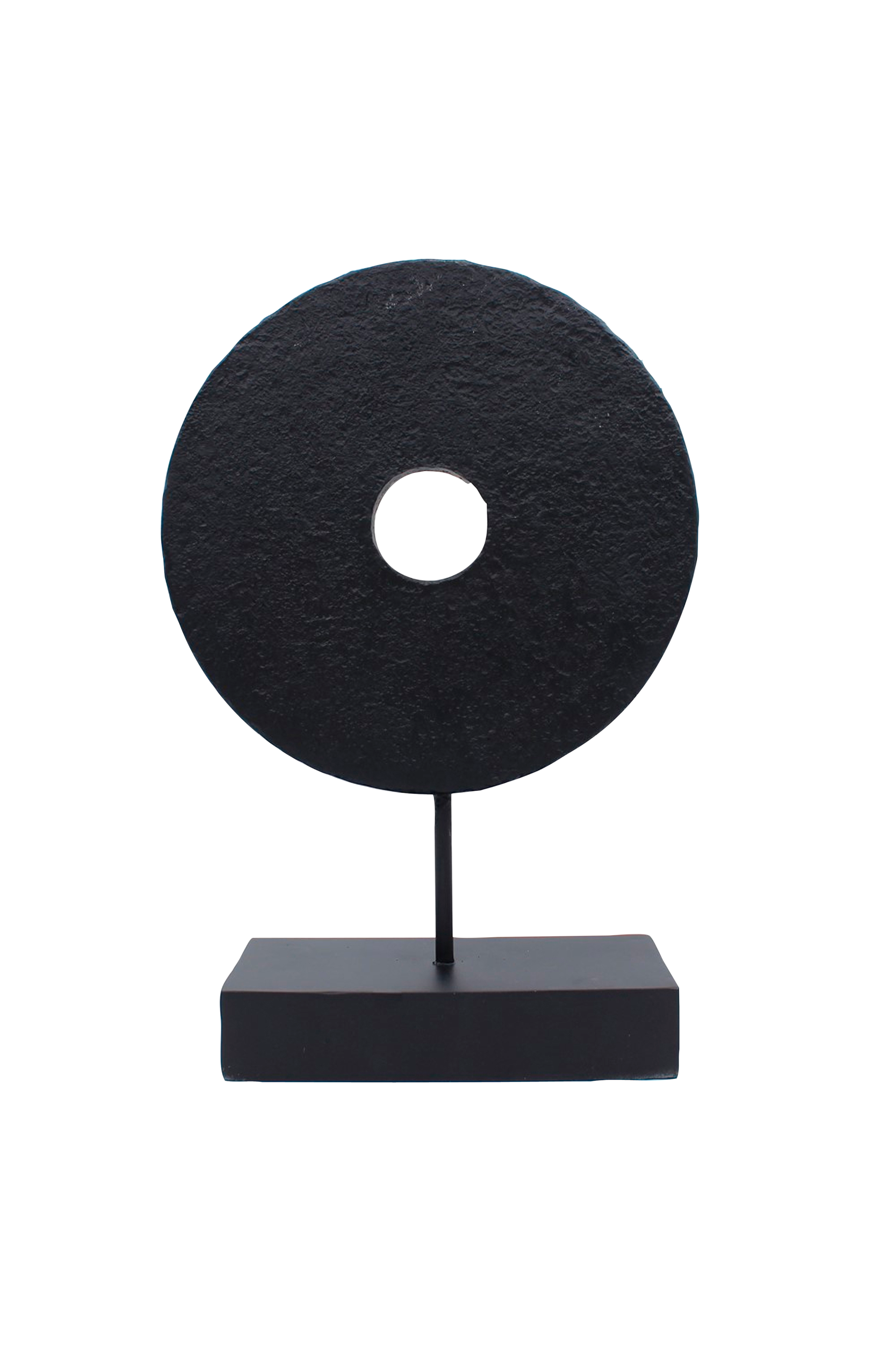 Hjulformet dekorfigur i polyresin som minner om stein.