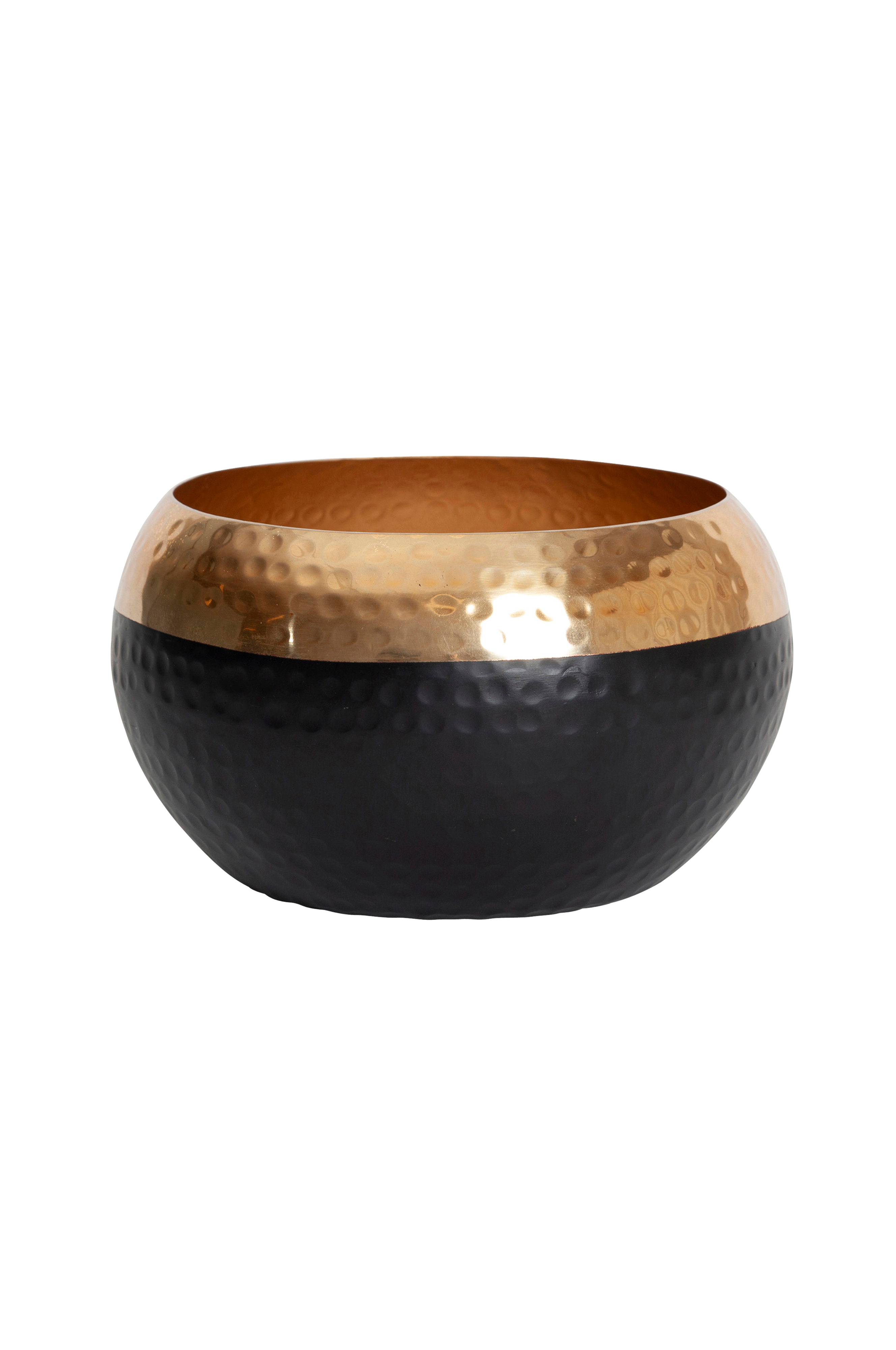 Krukke i hamret i aluminium. Høyde 10 cm. Diameter 18 cm