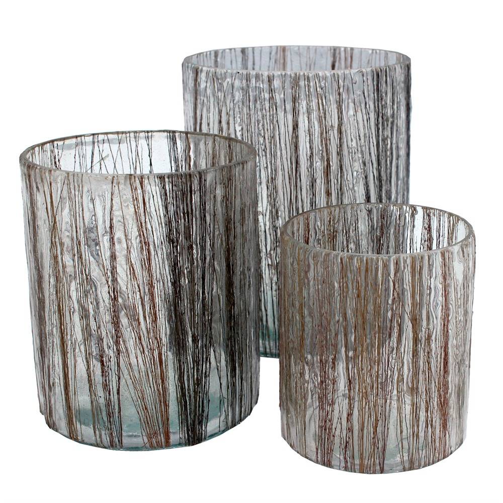 Fint sett med lyslykter i glass med dekorativt trådmønster. Liten lykt D7 cm x H8 cm, medium D8 cm x H10 cm og stor D10 cm x H12 cm.