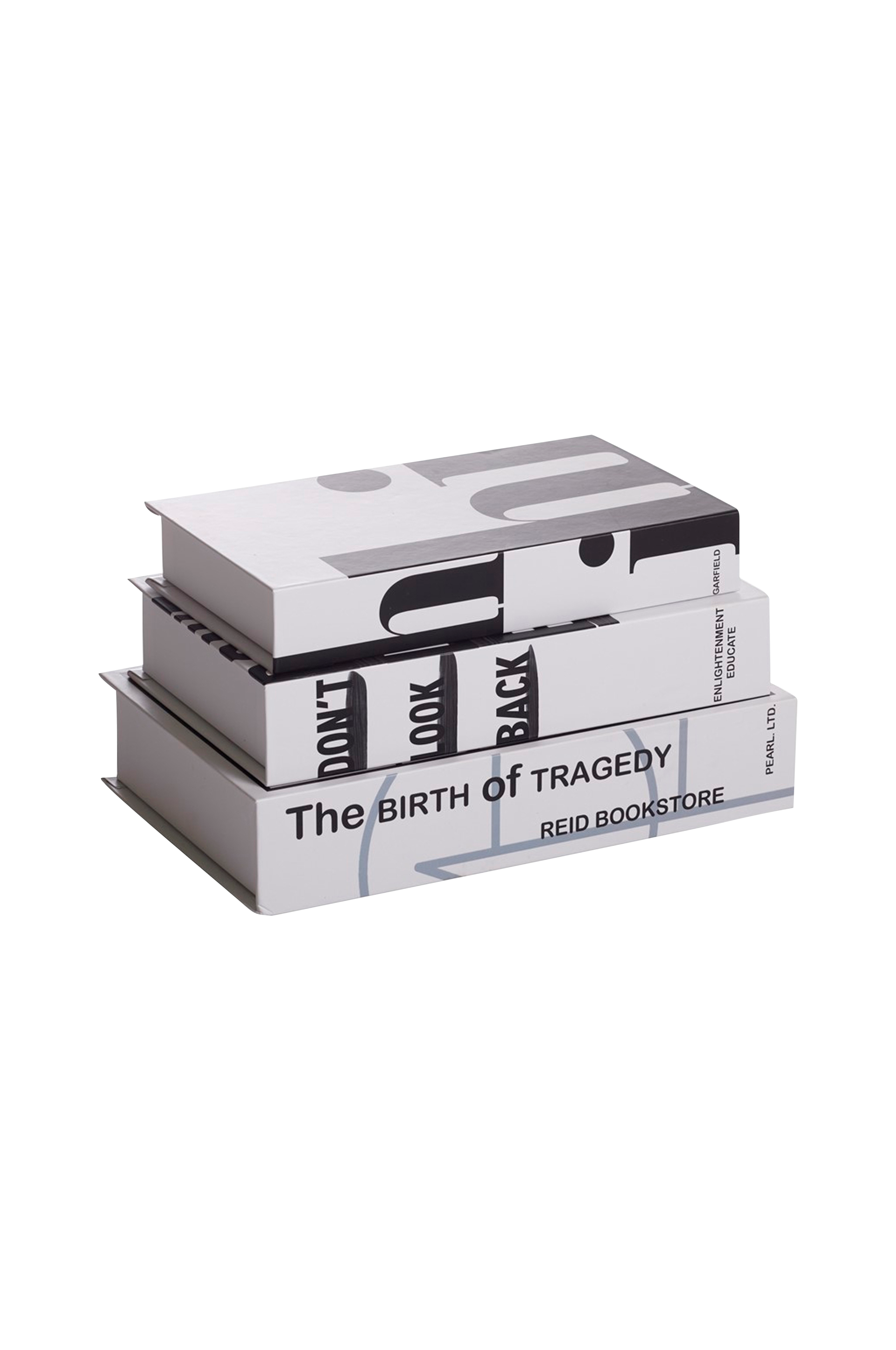 Pene esker som ligner bøker i kraftig papir. Perfekte å oppbevare fjernkontrollen i på sofabordet eller småting i bokhyllen. 3-pk. Størrelse 27 x 17 x 6 cm + 25 x 15 x 5 cm + 23 x 13 x 4 cm. Kvalitet 100% papir.
