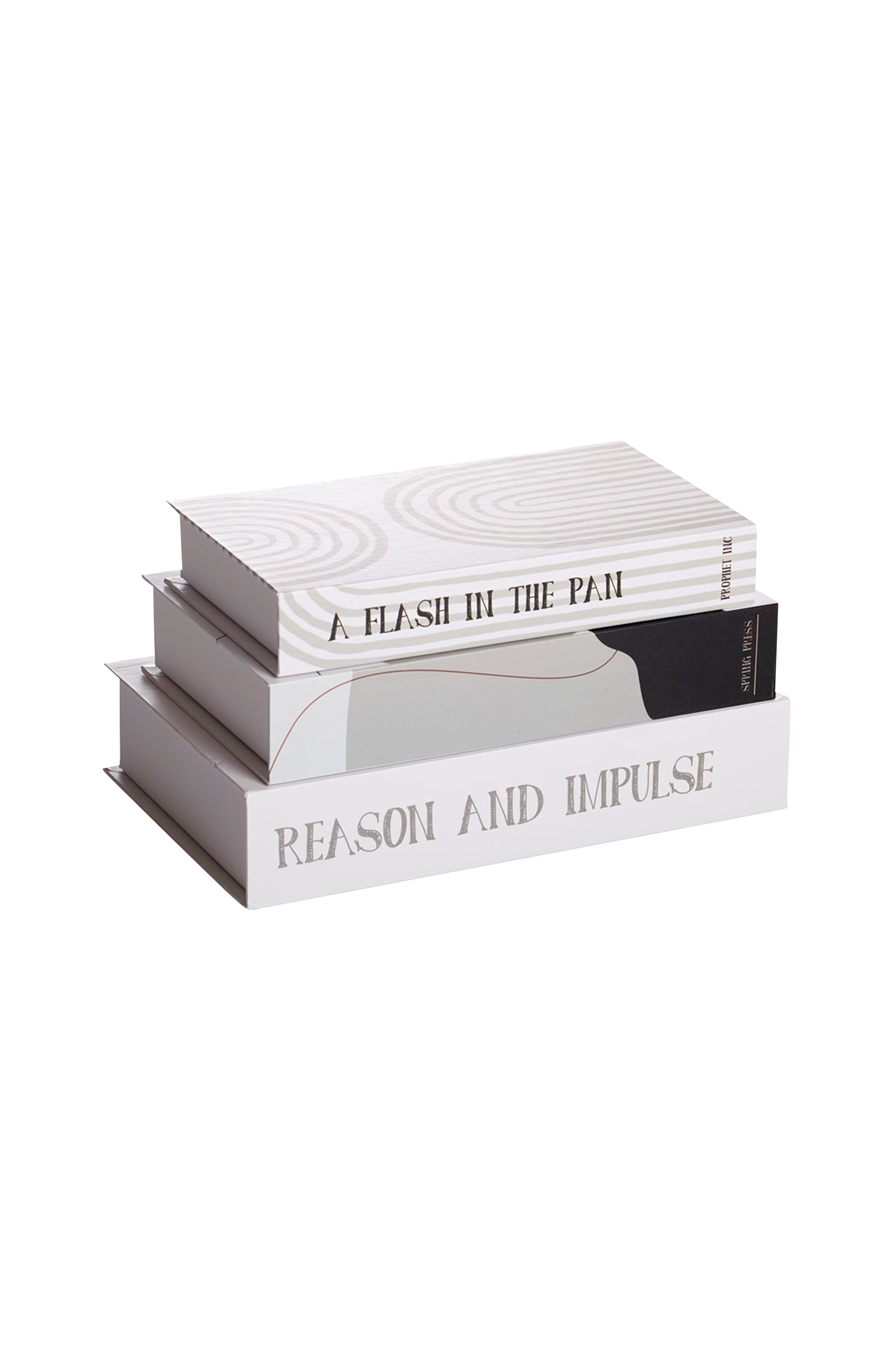 Pene esker som ligner bøker i kraftig papir. Perfekte å oppbevare fjernkontrollen i på sofabordet eller småting i bokhyllen. 3-pk. Størrelse 27 x 17 x 6 cm + 25 x 15 x 5 cm + 23 x 13 x 4 cm. Kvalitet 100% papir.