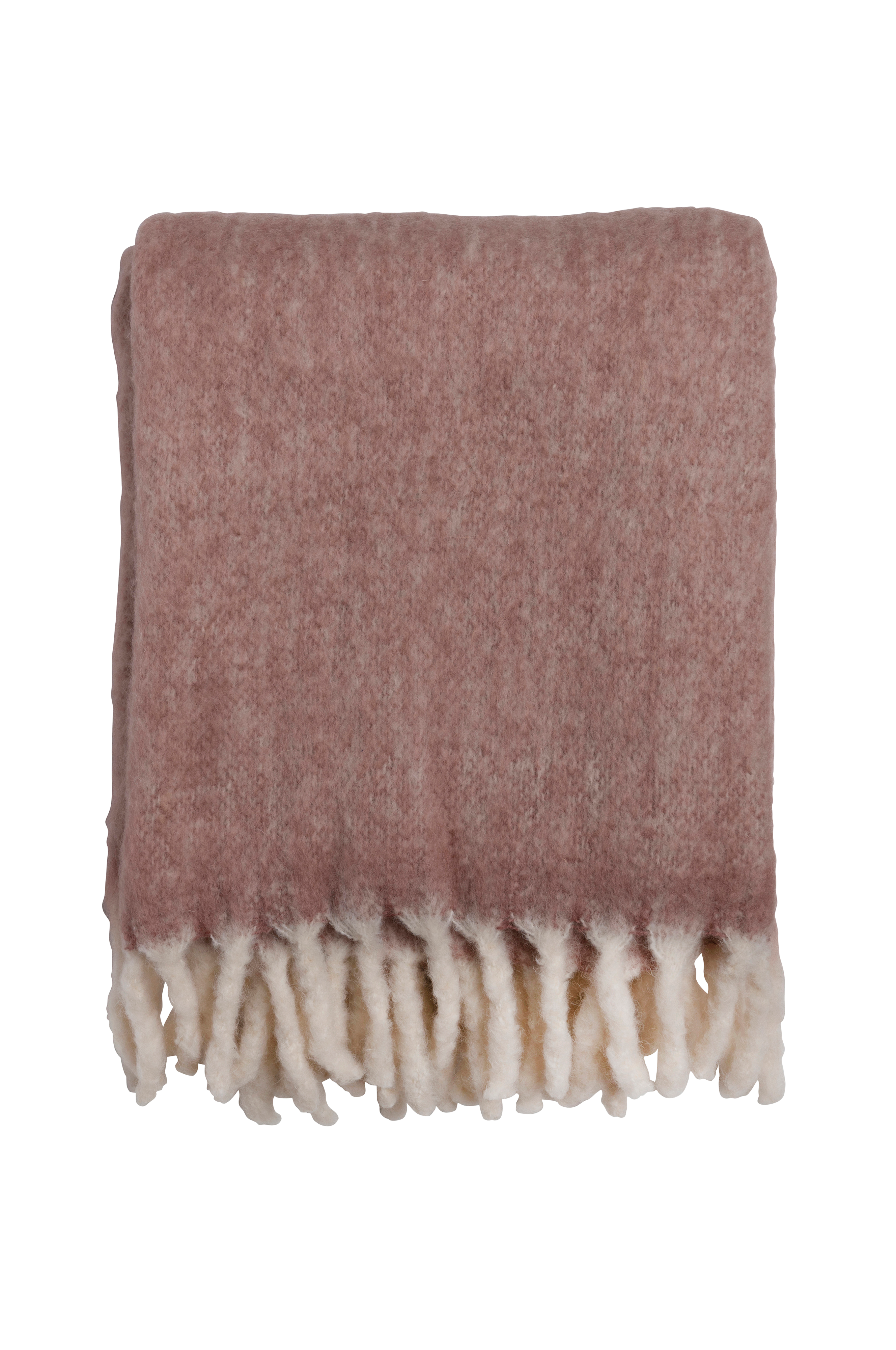 Mykt, tykt pledd i børstet kvalitet med frynser. Str. 130x170 cm. Materiale 59% ull, 26% akryl, 15% nylon. Renses.