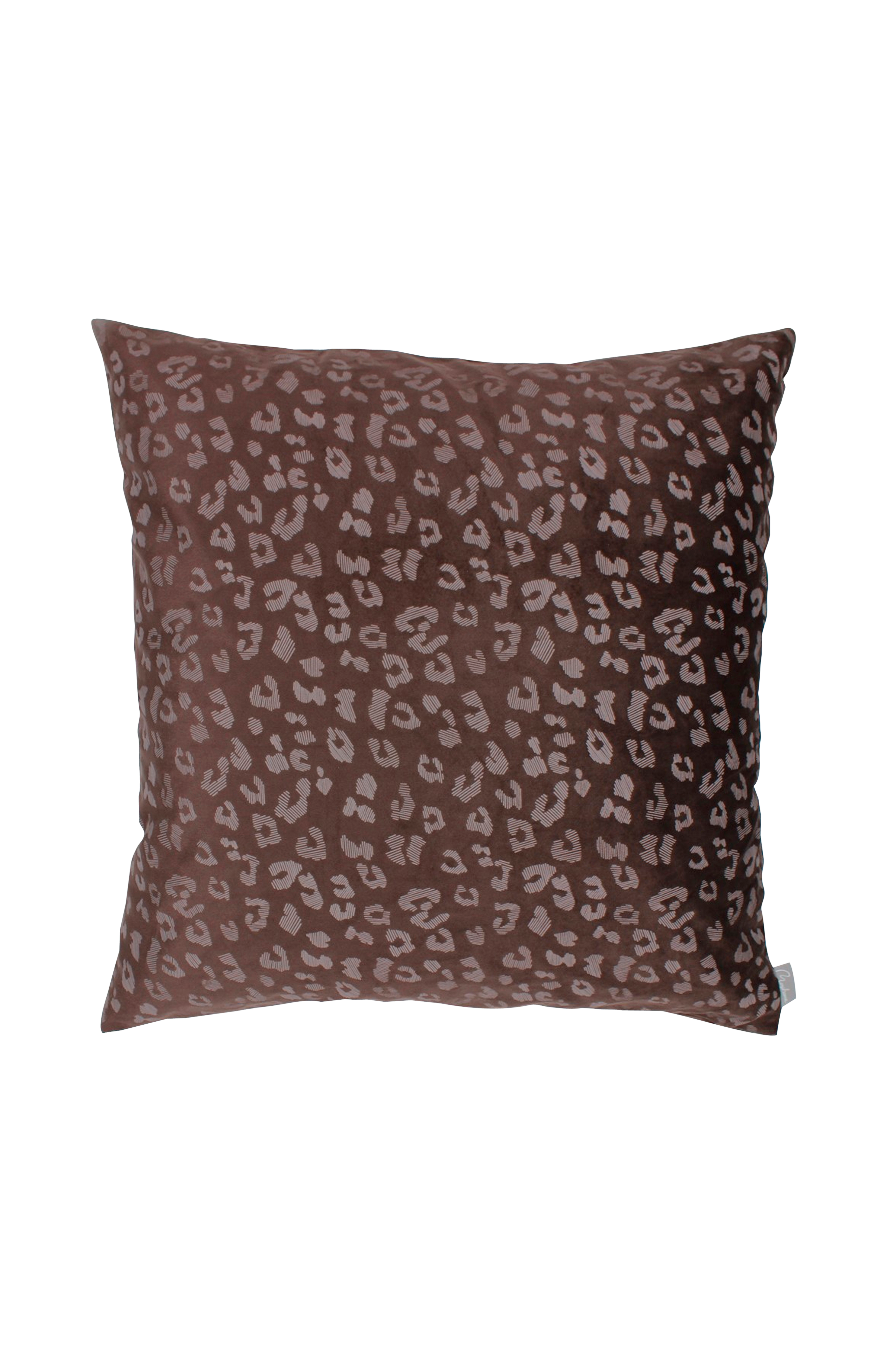 Putetrekk Leoni i fløyel med leopardmønster. Str 50 x 50 cm. 100% polyester. Vask 30°.
