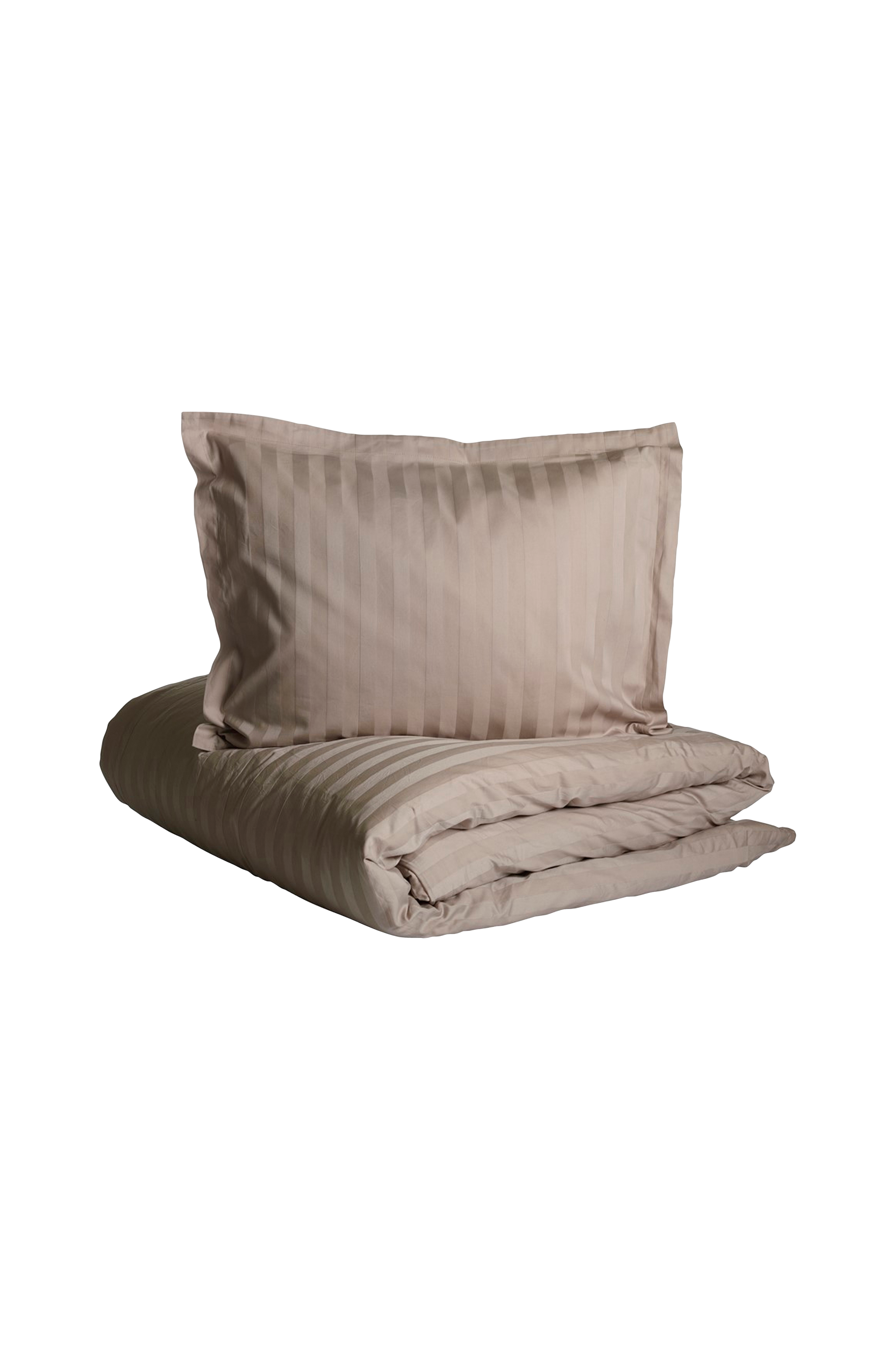 Vakkert, mykt og deilig ensfarget sengesett i hotellsatengstriper. Stoffet er av 100% bomull med en trådtetthet på 243, noe som er en veldig fin og tett vev. Dynetrekket har håndhull for enklere oppredning. Putevaret har en liten dekorativ vinge. Det finnes matchende putevar til puter i størrelsen 50x90 cm og 70x100 cm. Str B150xL210cm, putevar i str B50xL60cm. Vask 60°.