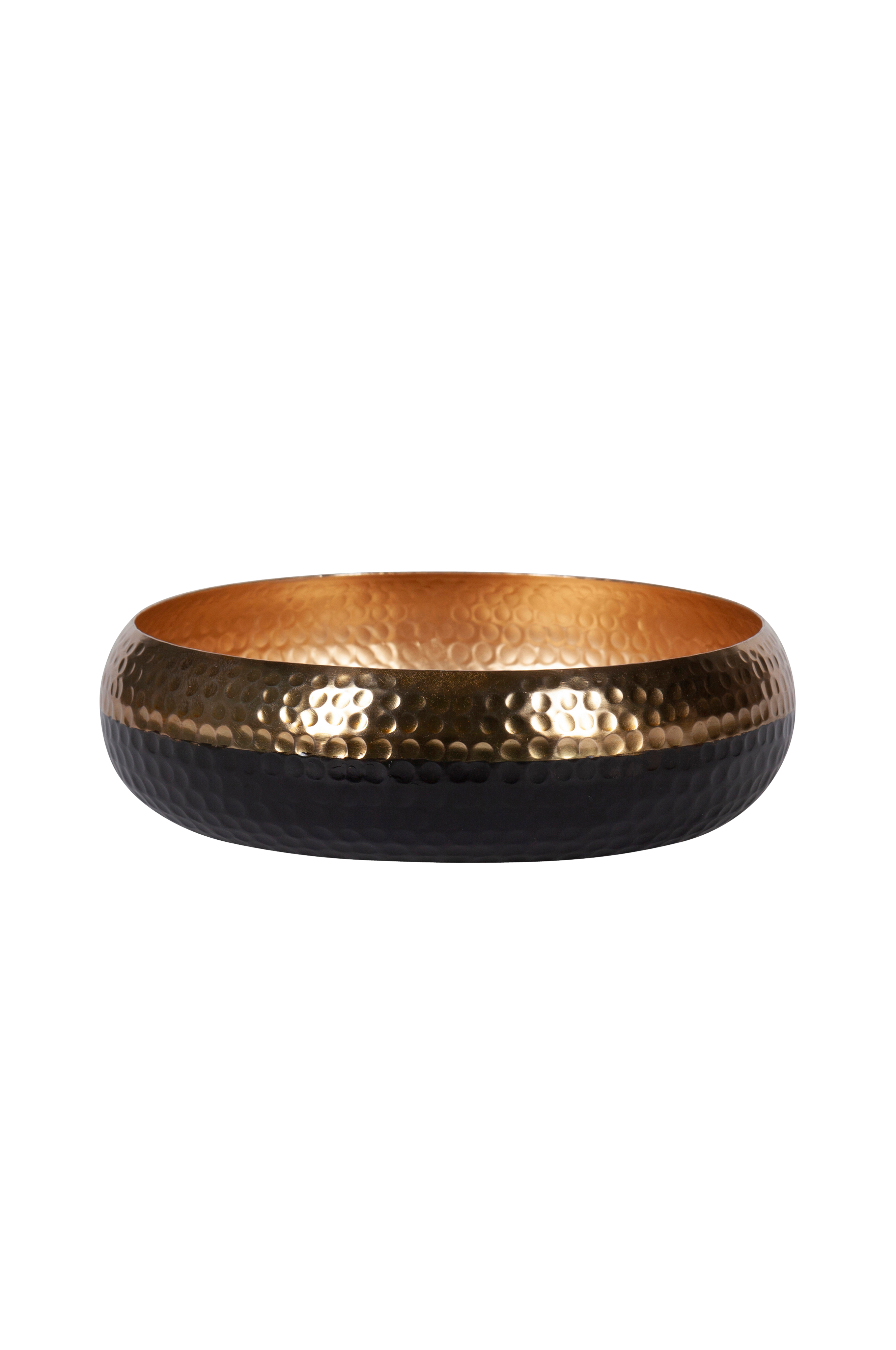 Rund skål i hamret i aluminium. Høyde 8 cm. Diameter 28 cm