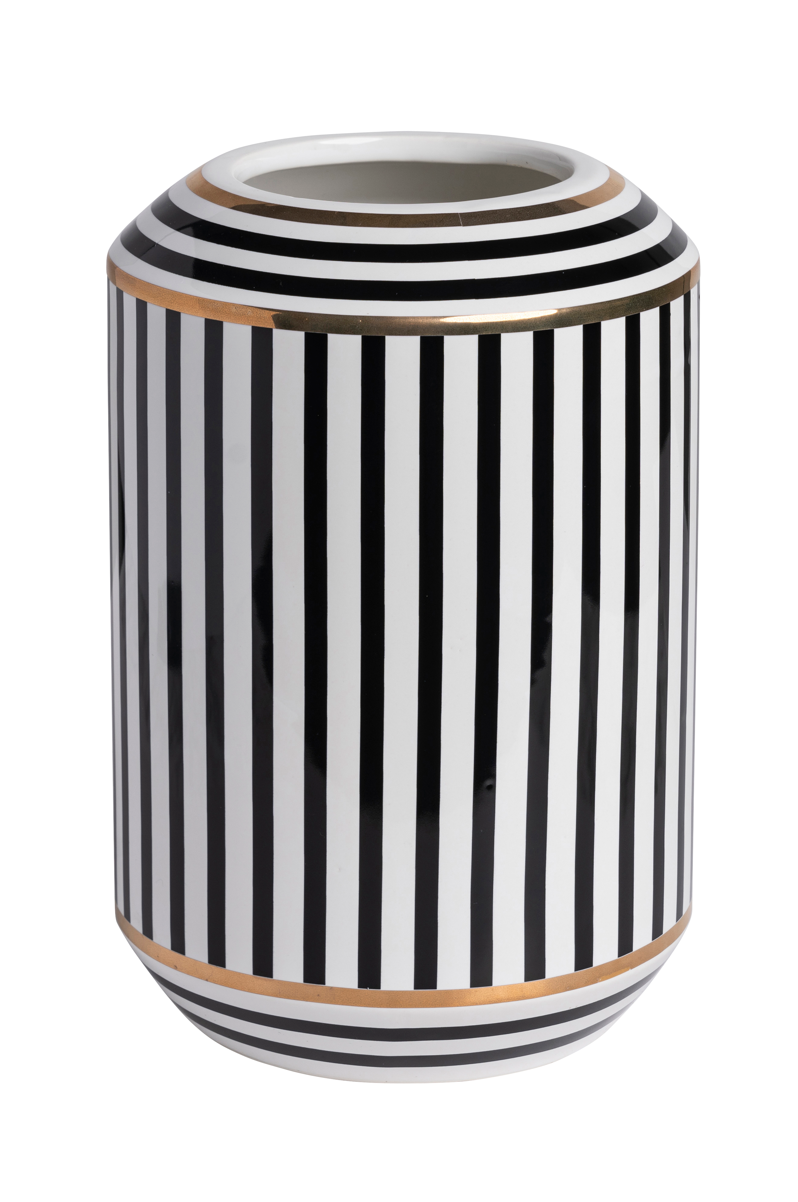 Stilren vase av glasert keramikk med fine striper i gull og svart. Disa kommer i 2 størrelser. Diameter 16 cm. Høyde 24,5 cm