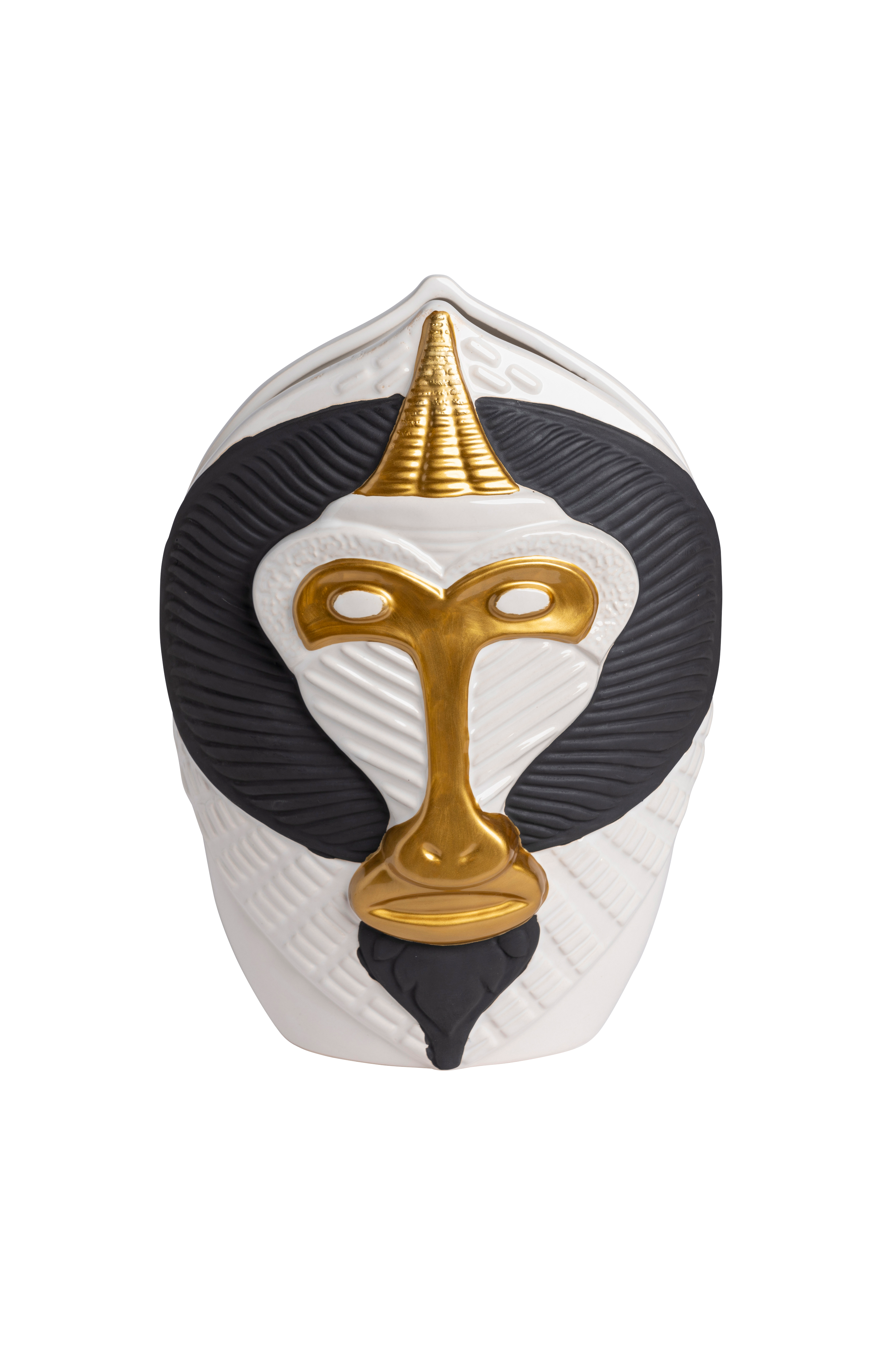Dekorativ vase av matt keramikk med relieffmønster og detaljer i gull og svart. Vase Mandrill kommer i 2 størrelser. Lengde 24,5 cm. Bredde 1,5 cm. Høyde 34,5 cm