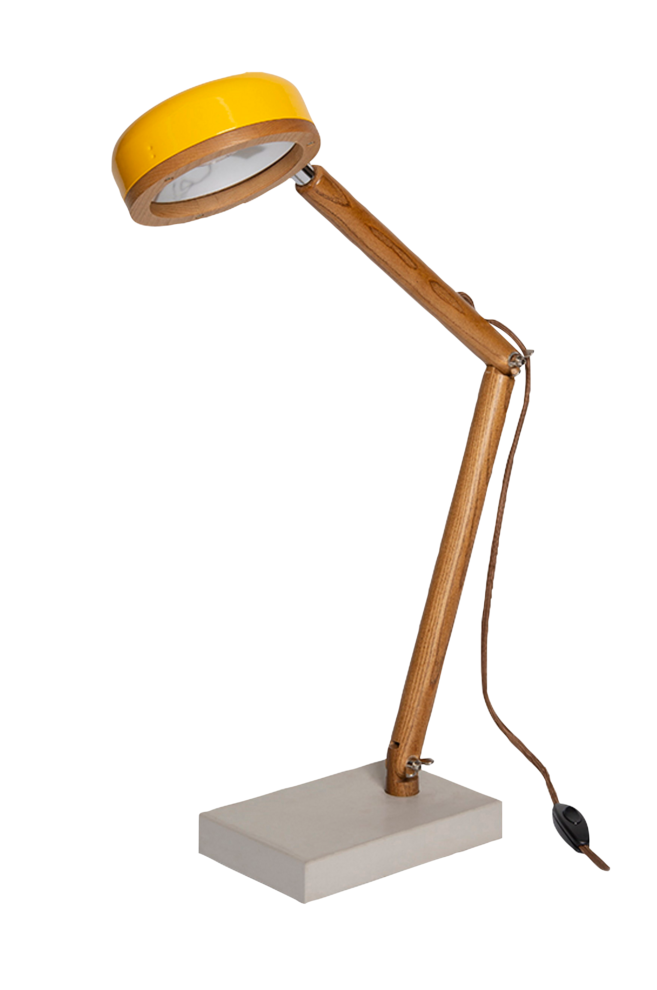 Bordlampen Hipp er en energibesparende LED-lampe med vakker, slank design som utstråler elegant, dansk estetikk. Lampen er perfekt på skrivebordet, ved siden av lesestolen eller i vinduskarmen. Materiale: betong, ask, malt aluminium. Mål: b 19,5 cm, d 12,6 cm, h 37,5-36,7 cm inkludert 2,5w g9 LED-pære og 2,2 m ledning i brun bomull.