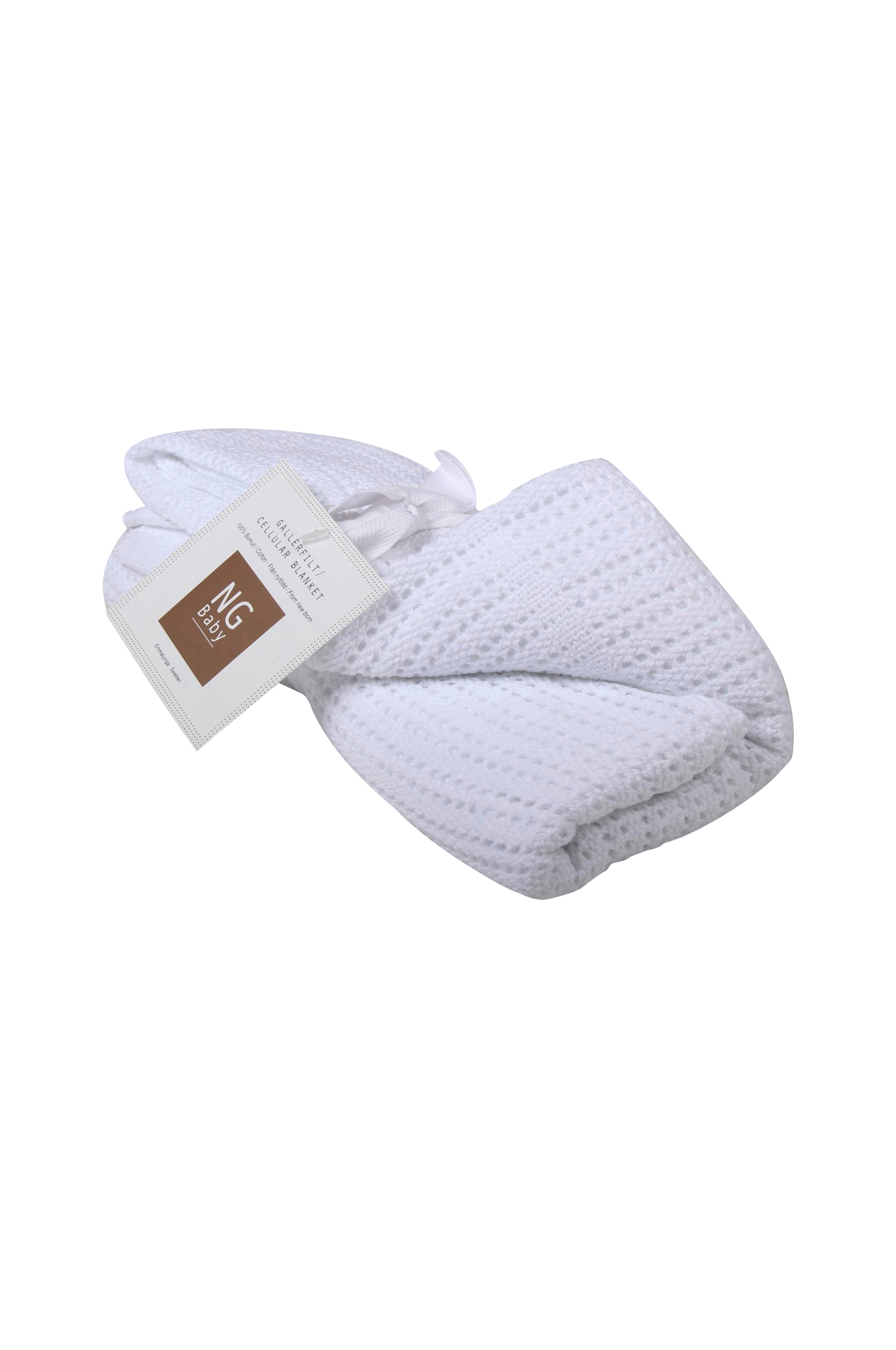 Mykt og herlig babyteppe i vakkert hvitt. Babyteppet har små hull som gir god luftsirkulasjon slik at barnet ikke blir for varmt. Teppet, som har sjenerøst mål, passer like bra i barnevognen som til kosestunder hjemme. Den myke bomullen er deilig og behagelig nærmest barnets hud.