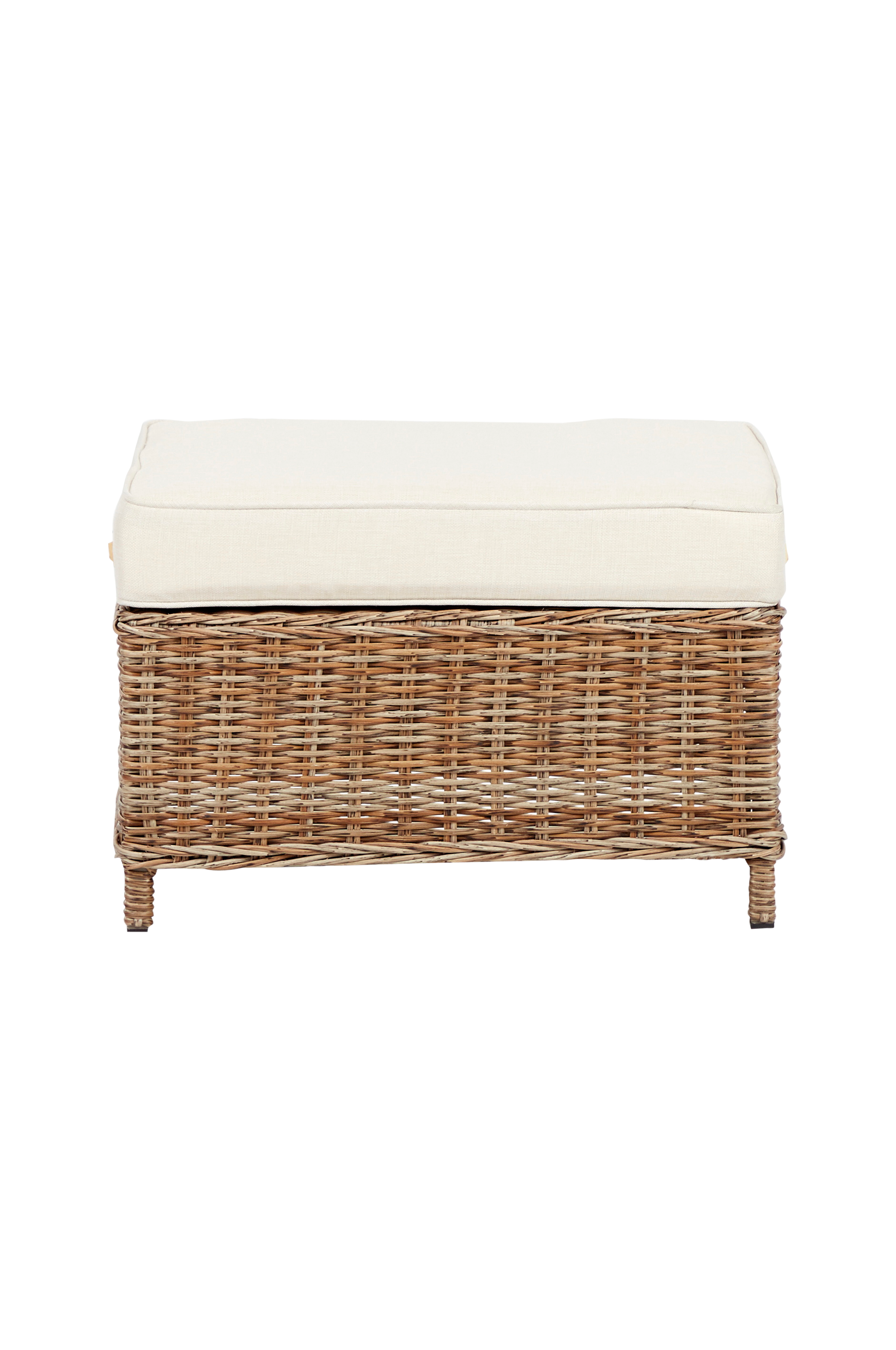 Gjør avslapningen enda bedre med vår utsøkte fotstøtte, designet for ren komfort. Denne fotstøtten har en praktisk høyde på 40 cm, noe som gjør den til den perfekte ledsager til uteserveringen. Den er laget av slitesterk halvrund rotting og behagelig polyesterstoff, og passer perfekt til ethvert utemiljø. Den 10 cm tykke puten i 220 g/m2 polyester gir en myk og innbydende overflate å hvile føttene på. Enten den brukes alene eller sammen med andre utemøbler, er fotstøtten et koselig og stilig tilskudd til uteplassen din. Med denne elegante fotstøtten får du en ny opplevelse av å slappe av utendørs.