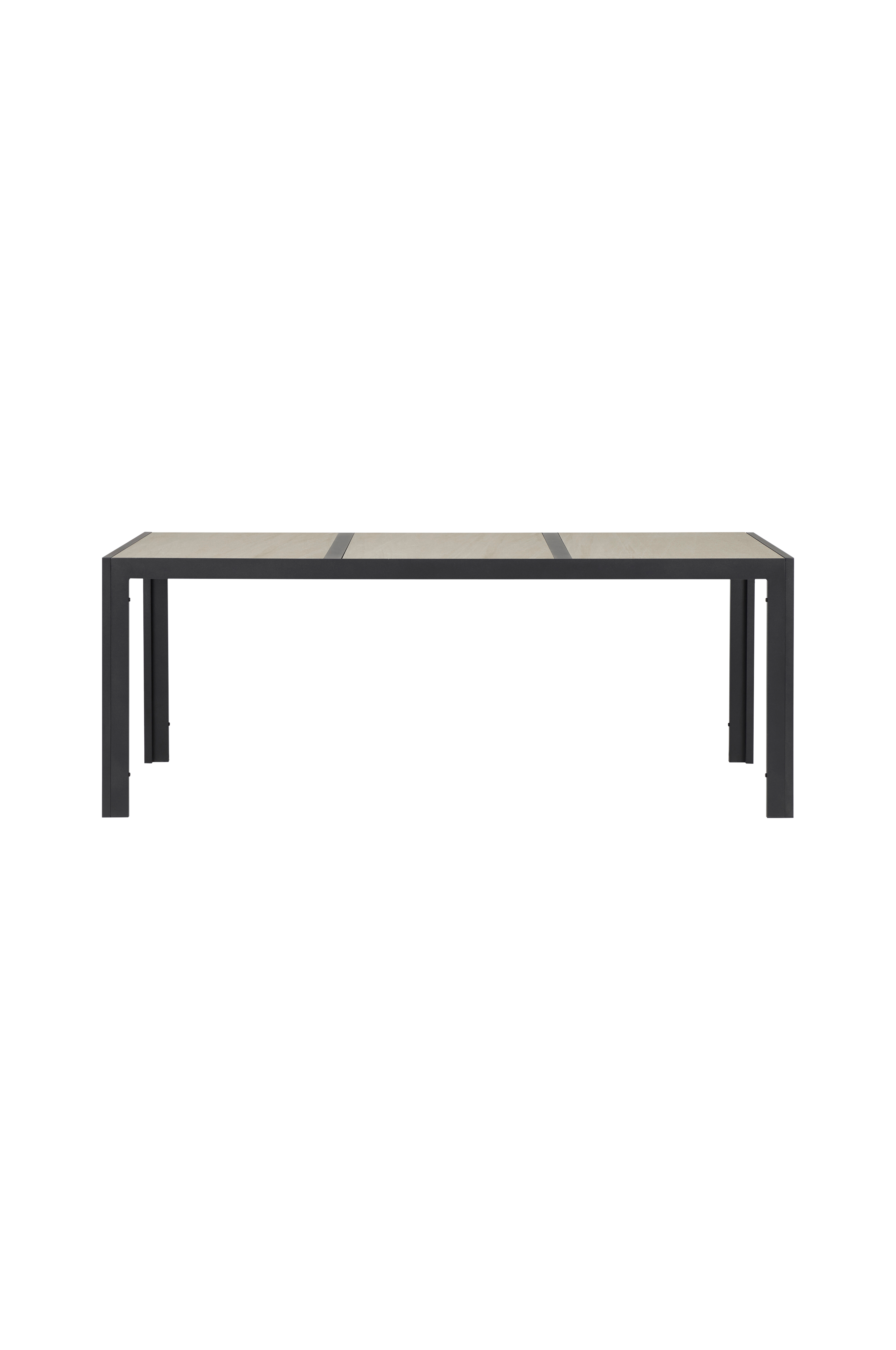 Vakkert bord med svart stamme av aluminium og store keramiske plater som utgjør selve bordplaten - et svært stabilt og holdbart bord som gir mye for pengene. Platene er naturfarget og perfekte hvis du foretrekker stein fremfor tre.