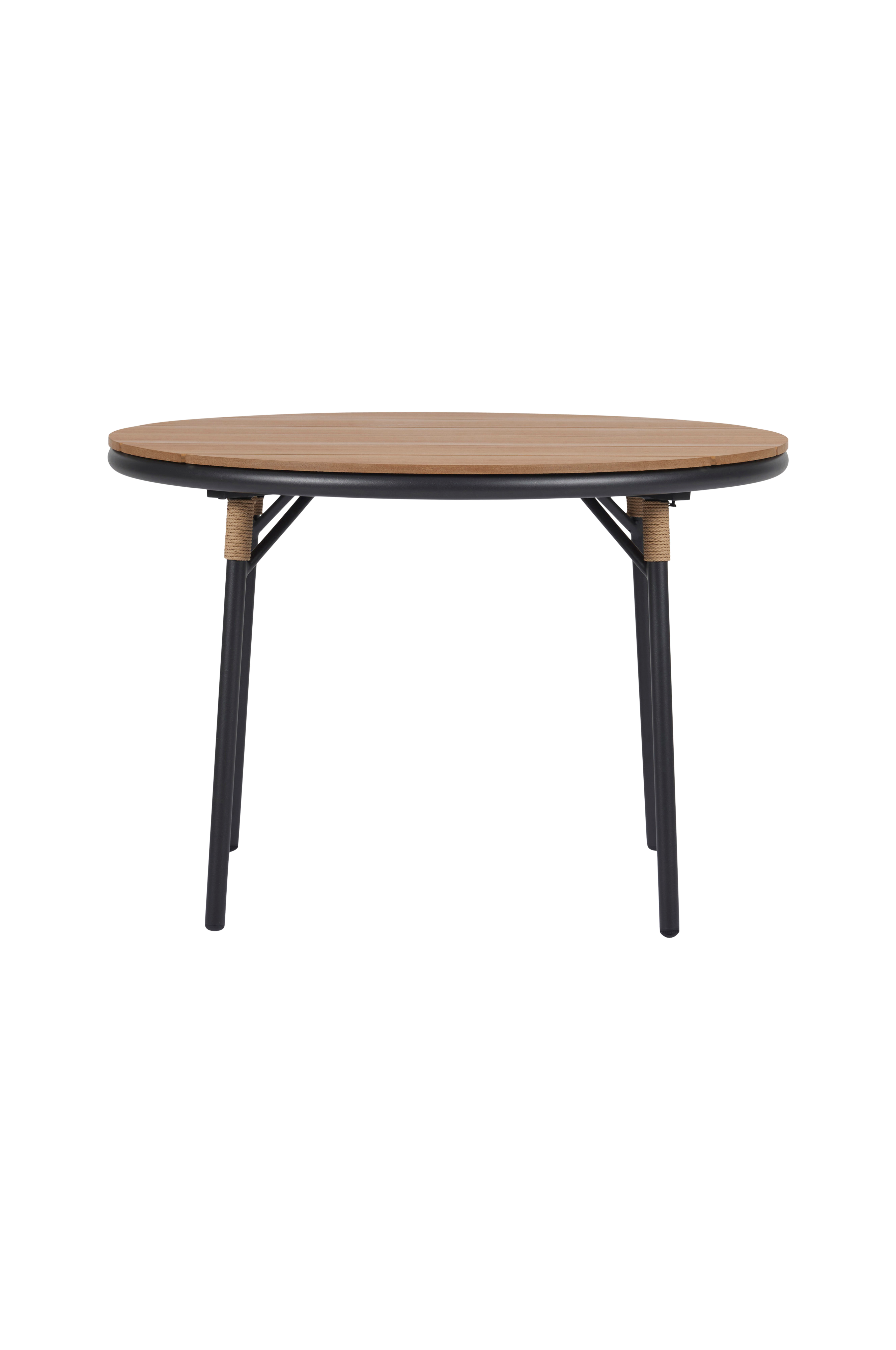 Det runde bordet med polywood etterligner tre samtidig som det er vedlikeholdsfritt. Stammen har runde former som matcher bordkanten. Bena har små, fine detaljer i polyrotting. Et vakkert bord for uteplassen.