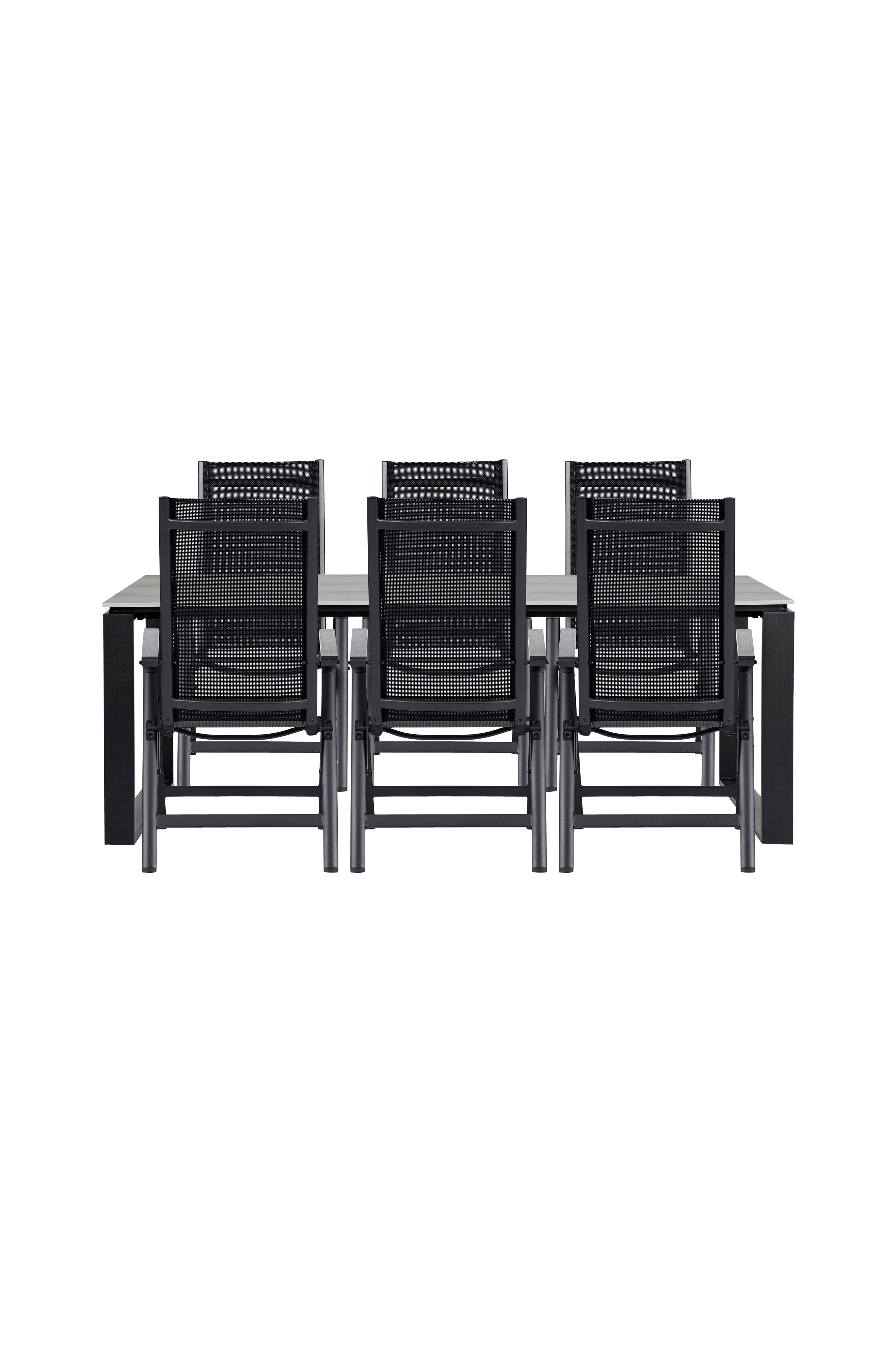 Armlenene er brede og solide. De er belagte med polywood, som ligner svartmalt tre.