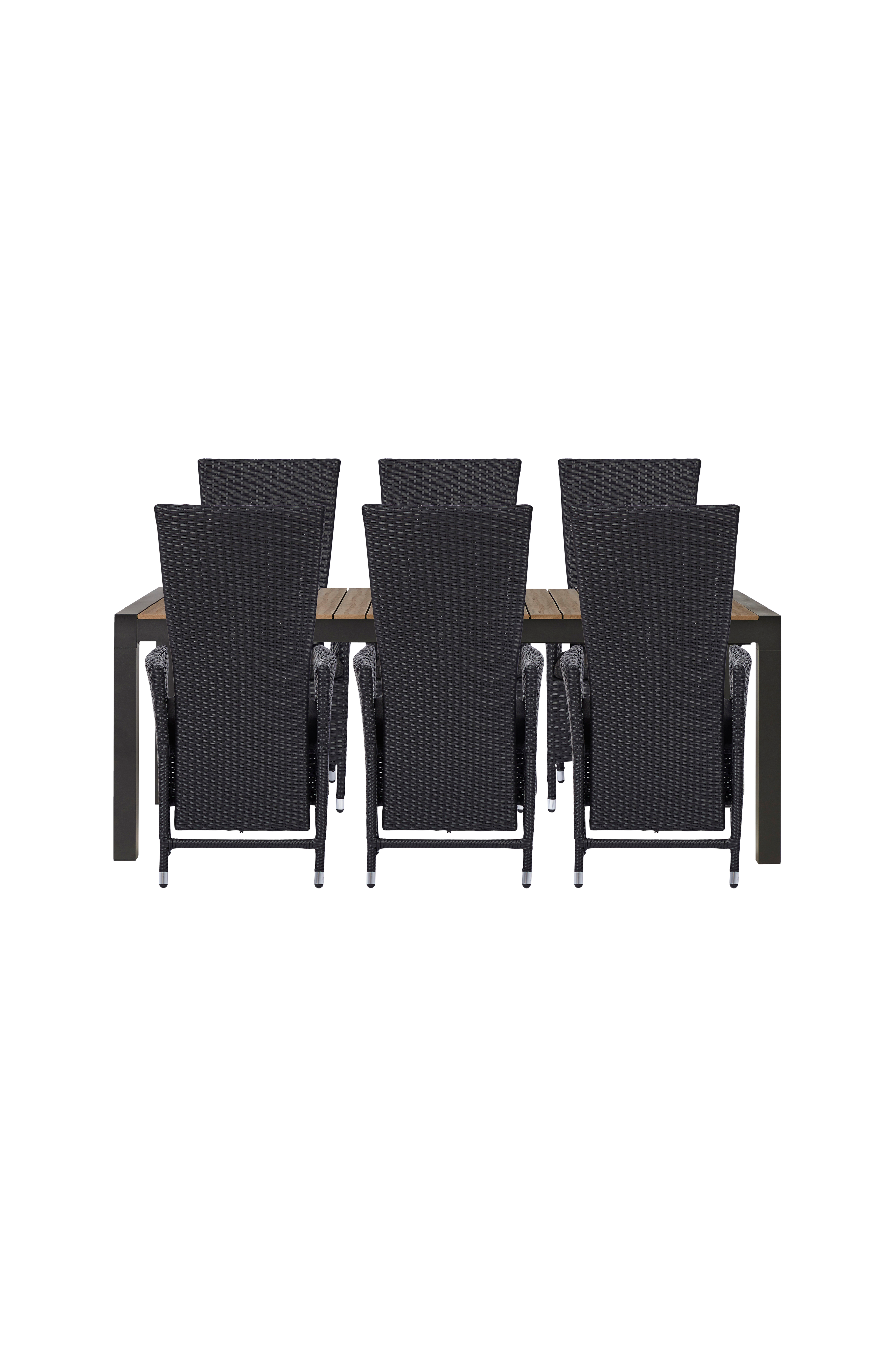 Fantastisk stol med trinnløs justering - perfekt å bruke ved hagebordet eller bare for å sitte ute i hagen. Stammen er produsert av sterk aluminium, som gjør stolen stabil, og er kledd med håndvevd svart polyrotting som er svært myk. Polyrotting er perfekt for hagemøbler takket være dens egenskaper - den er fleksibel samtidig som den er vedlikeholdsfri og holdbar.