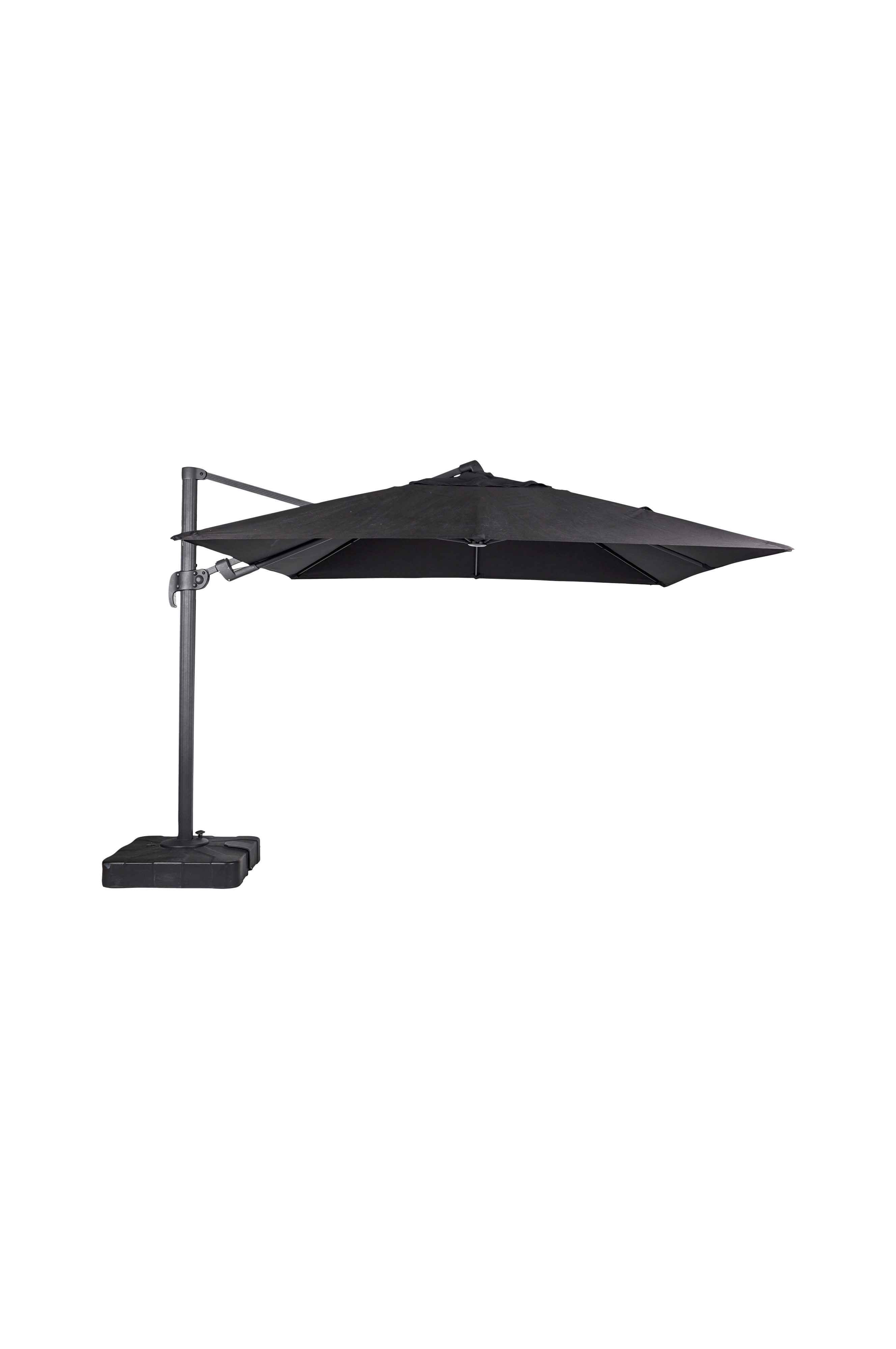 Lekker hengeparasoll som gir perfekt skygge på uteplassen når sola skinner. Denne modellen kan enkelt justeres, åpnes og lukkes ved hjelp av håndtaket som du også kan vri den 360° med.