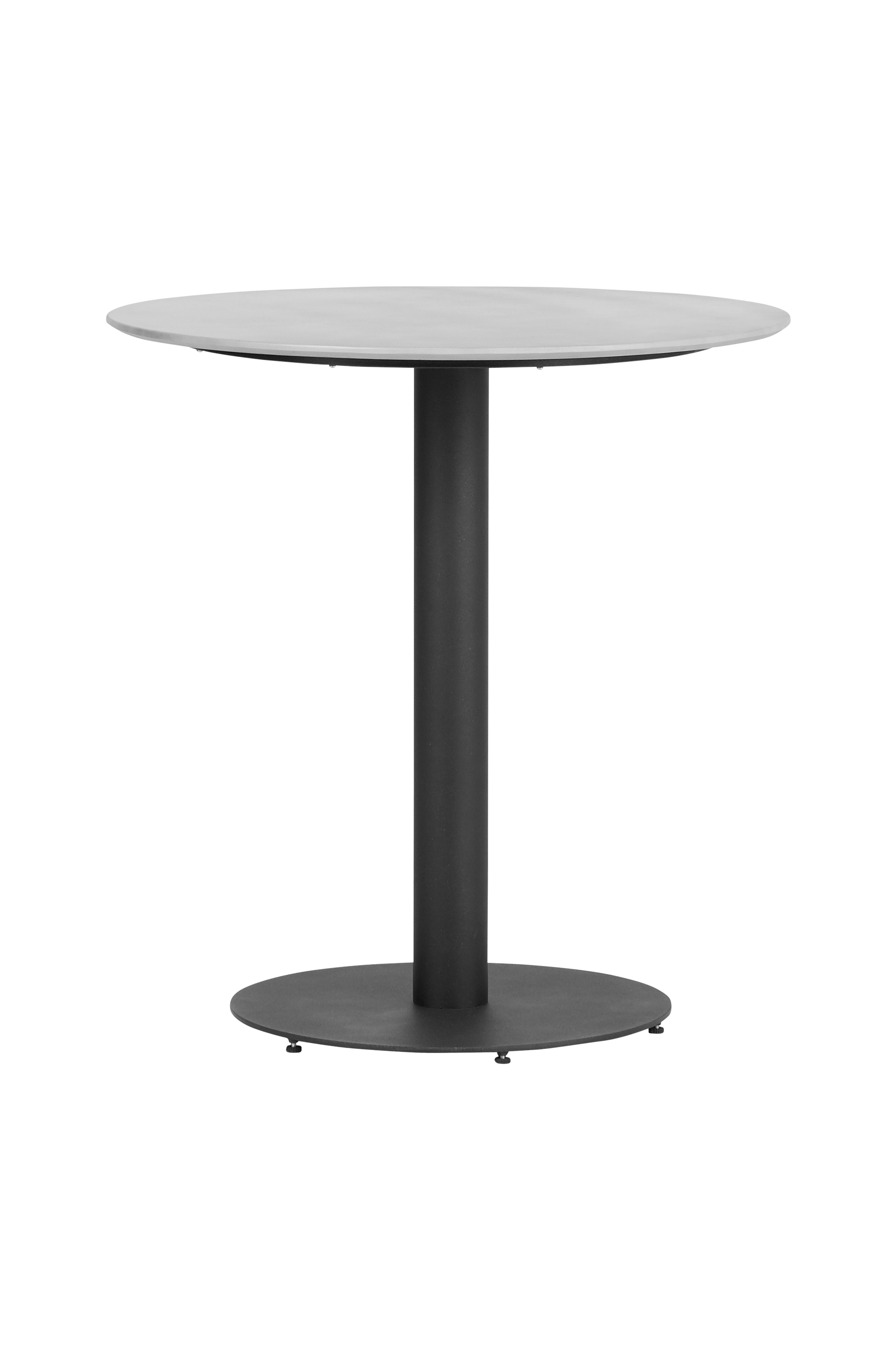 Bordet er produsert av vedlikeholdsfritt materiale, og benet i midten gjør det enkelt for flere personer å sitte rundt. Benet kan tilpasses til gulvet ved justeringsfunksjonen under foten. Bordplaten er produsert av Durafit som ligner stein, noe som gir en innbydende og robust følelse. Bordet har en grå, betonglignende overflate og ett svart ben. Det gir en fin kontrast i de fleste interiører.