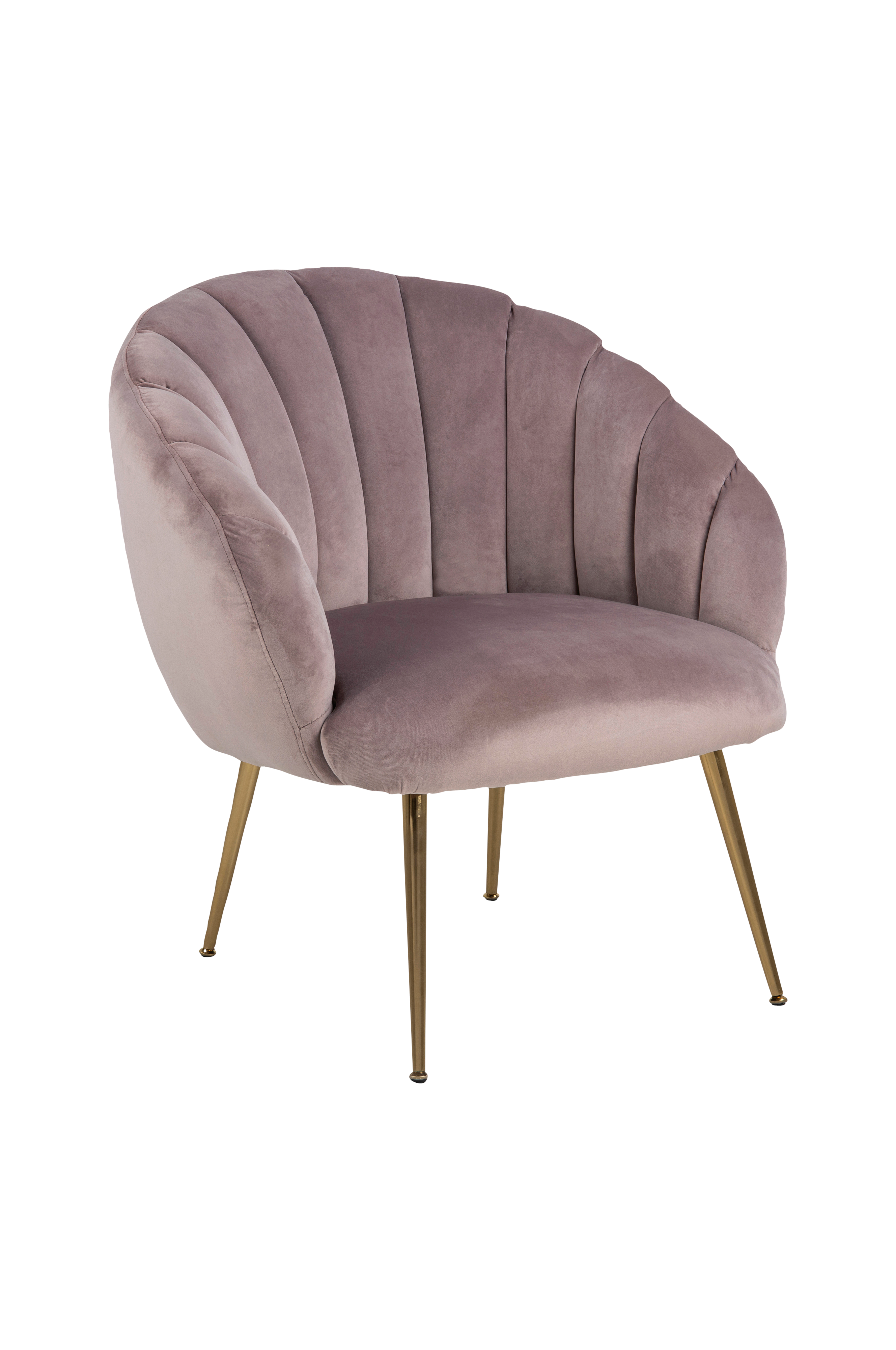 Lenestol med polstret sete og rygg kledd med fløyelsstoff. Messingfargede metallben. Mål: høyde 81, dybde 76, bredde 76 cm. Kun bena må monteres.