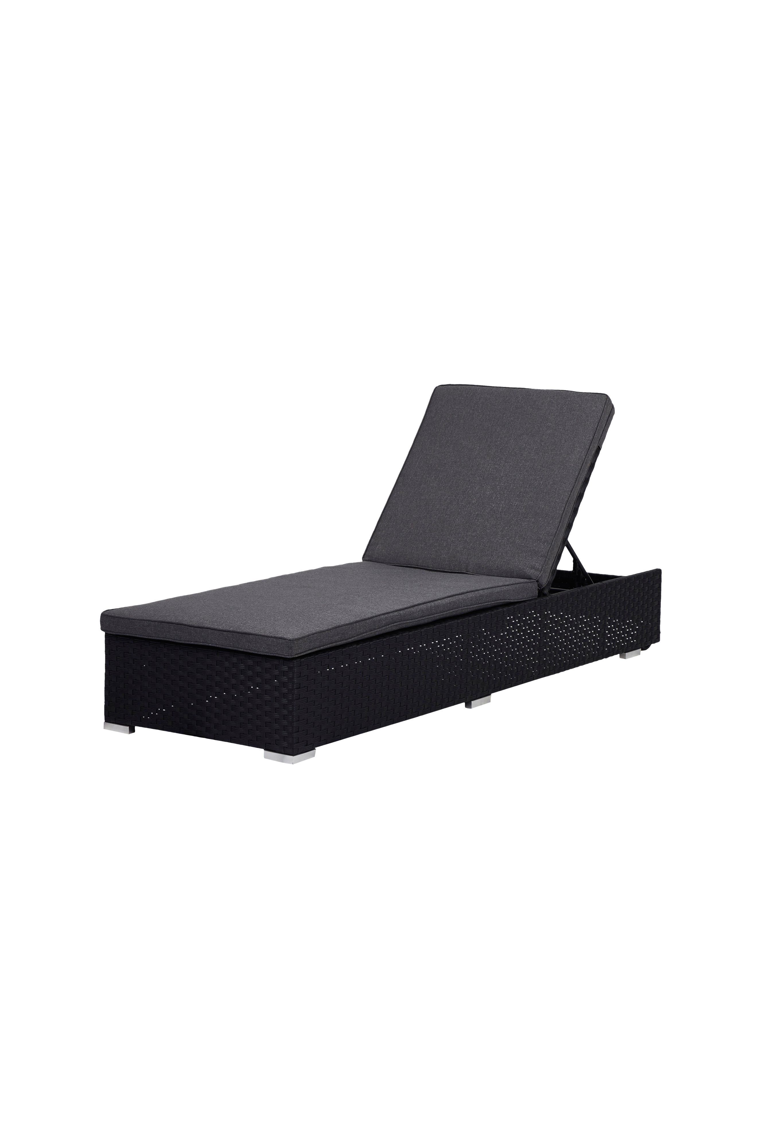 Fantastisk solstol med 5 nivåer + liggende posisjon. Stammen er av 100% aluminium og kledd med håndvevd polyrotting, et supermateriale for hagemøbler ettersom det er resistent mot både mugg og fukt. Puten er produsert av slitesterk 220 g/m² polyester som er vannavvisende og har mørk grå farge. Puten har en åpning øverst for å feste den i overkanten på solsengen. Solsengen har skjulte hjul, noe som gjør den lett å flytte rundt.
