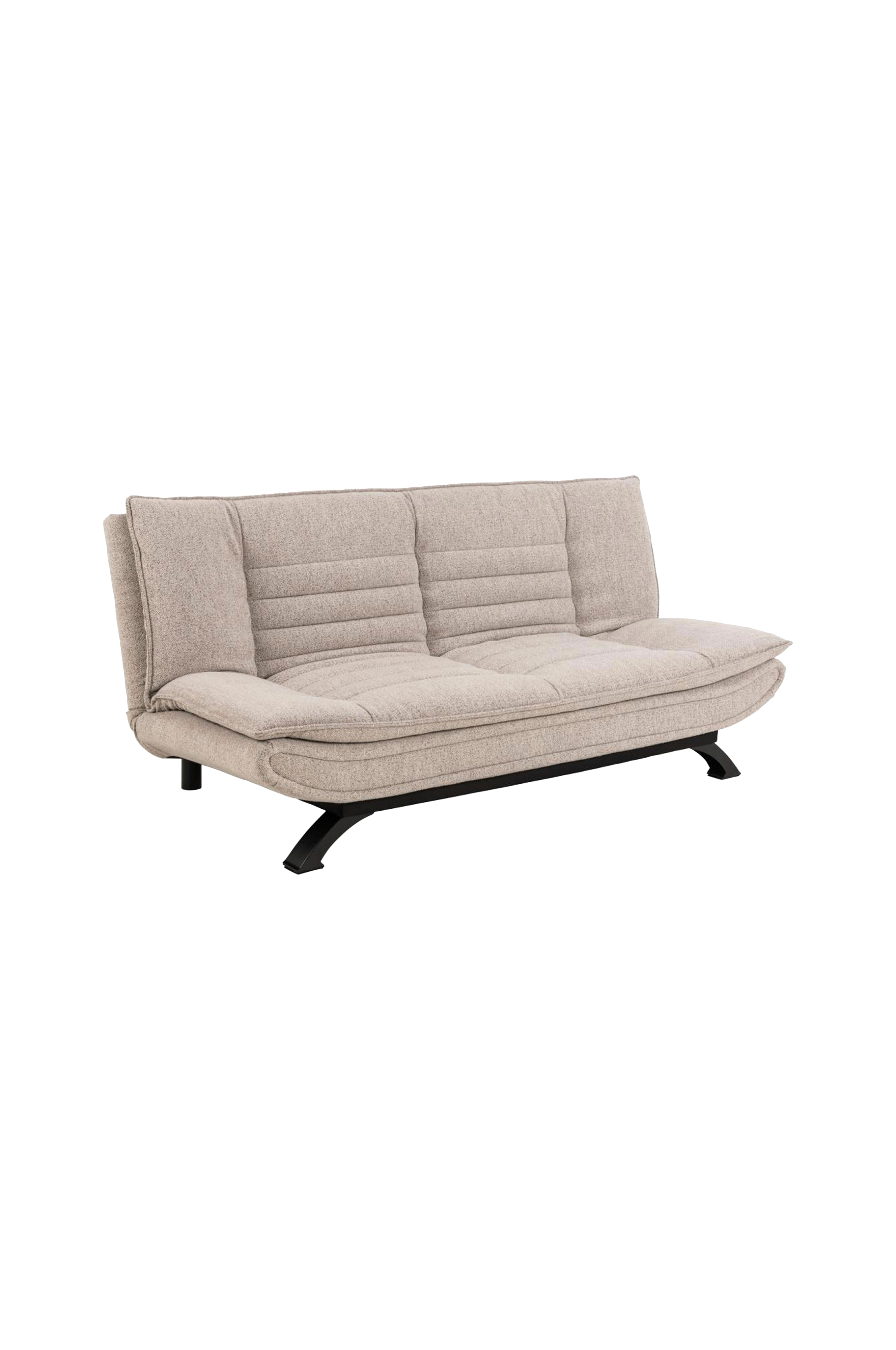 Denne elegante sovesofaen er en moderne og praktisk løsning for studentleiligheter og gjesterom. Med click-clack-systemet kan sovesofaen stilles i tre posisjoner: oppreist, tilbakelent og flat. Den beigefargede sofaen er trukket i et mykt bouclé-stoff med sømdetaljer, noe som gir en behagelig følelse og gjør rommet hjemmekoseligere. Den står på solide ben i svart metall som gjør utseendet komplett.