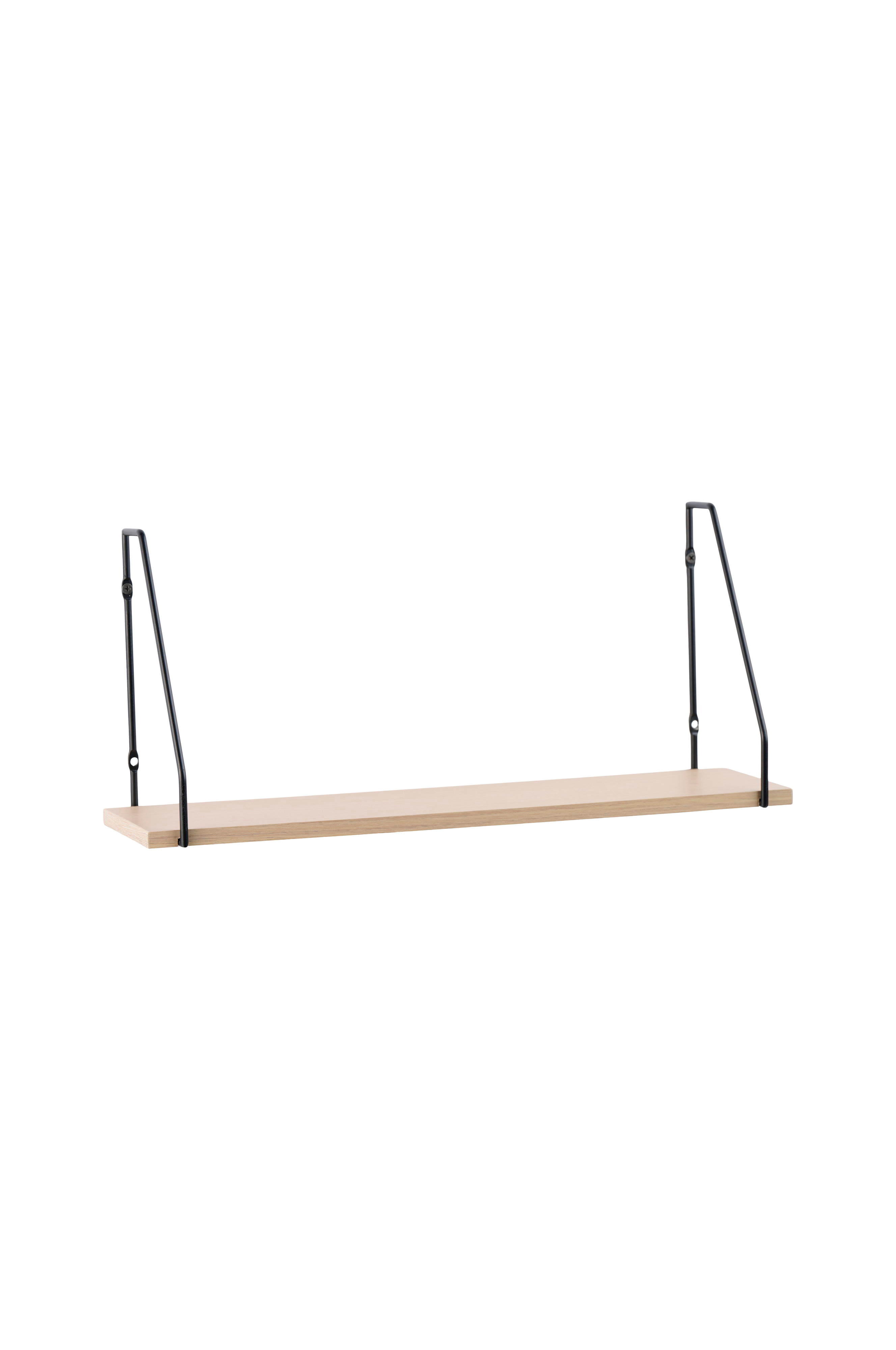 Vegghylle med to hyller med mange bruksområder. Hyllene skjuler skruene i veggen, og det pulverlakkerte metallet i svart farge er stilig og gir en fin kontrast til gjenstander. Hyllen er perfekt for å vise frem ting i hjemmet.