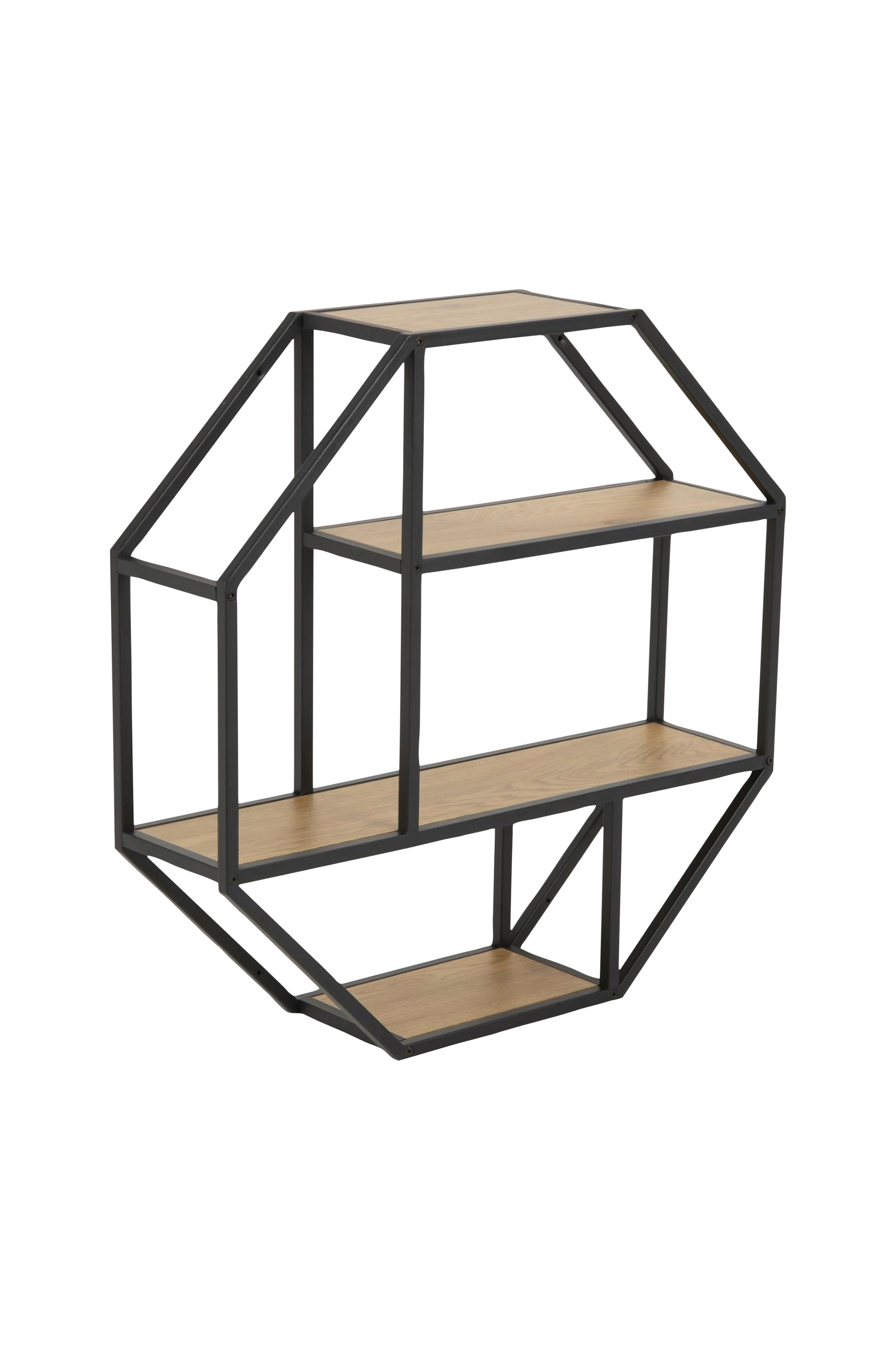 Skap en unik vegg hvor du viser frem dine favorittgjenstander på en personlig måte. Denne åttekantede vegghyllen gir rommet stil, og kan kombineres med en rekke ulike interiørstiler. Vegghyllen har hyller med eikefinish og pulverlakkert metallstamme. Plater av foliert MDF.