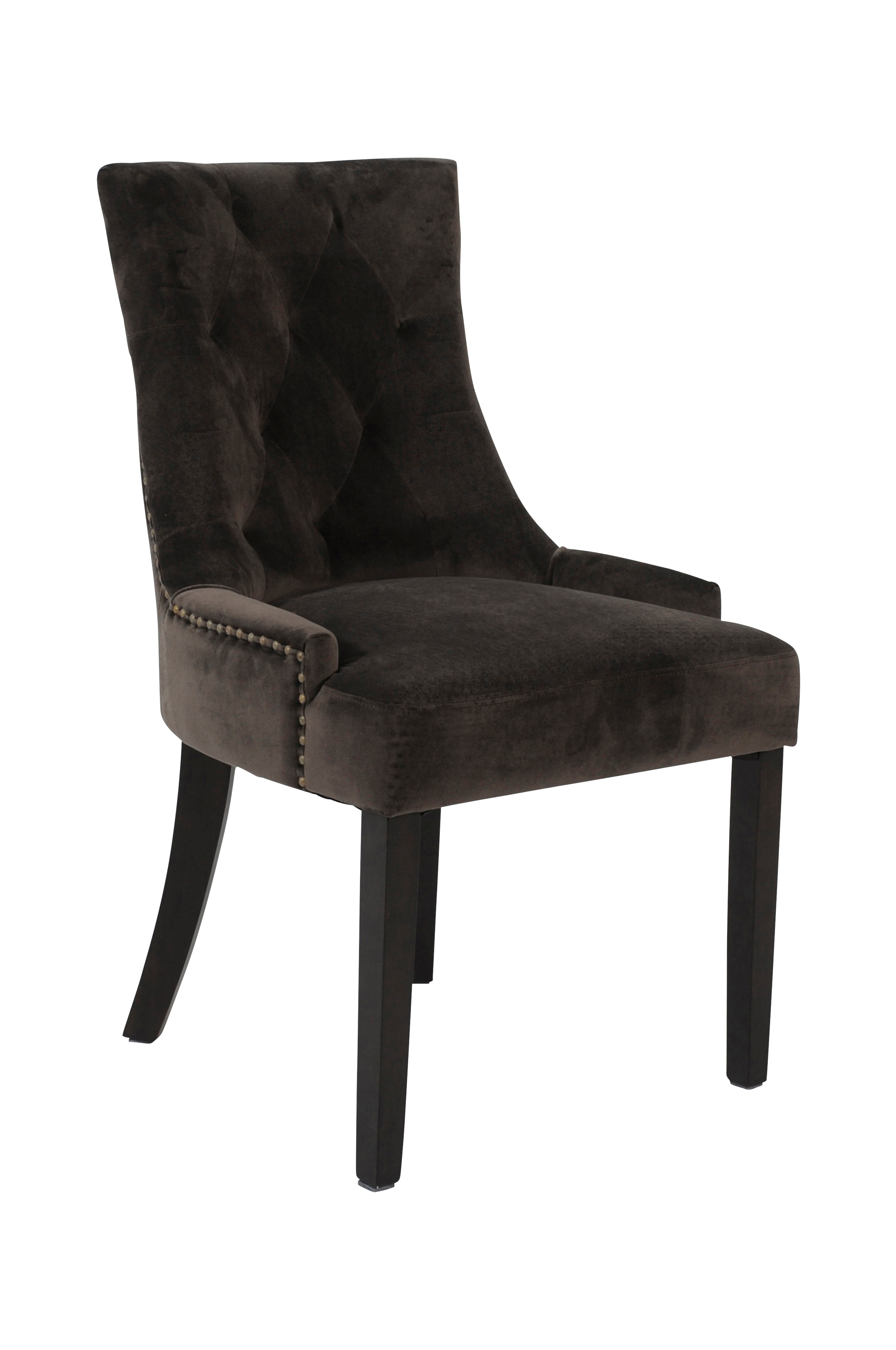 Lekker spisestol i velur med dekornagler. Pent drapert i ryggen. Ben i lakkert tre.