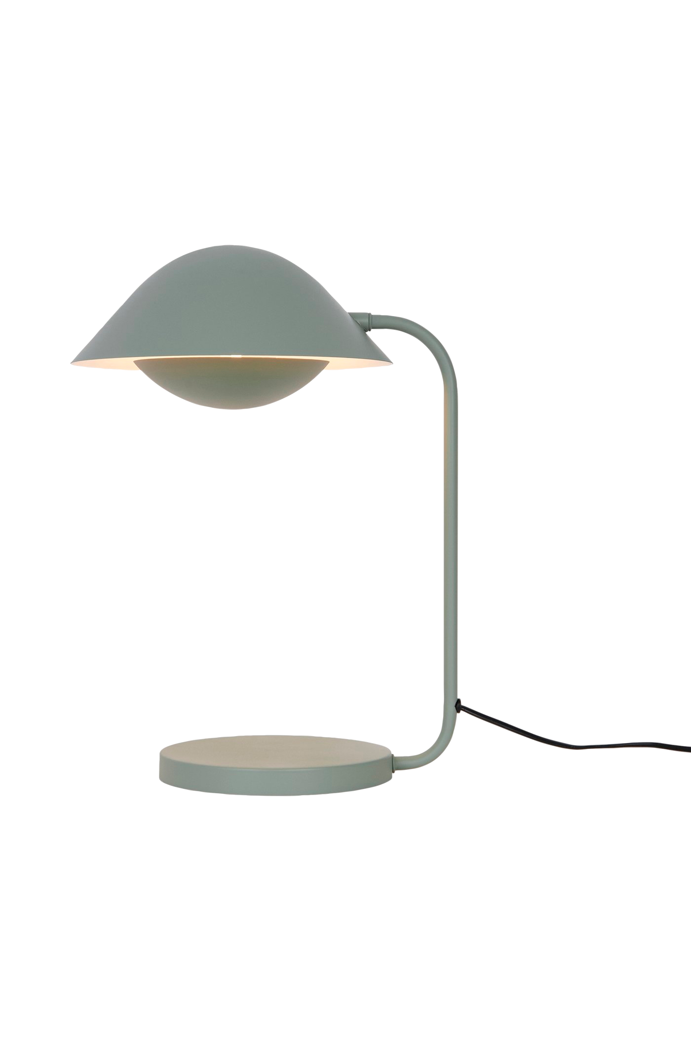Freya er en serie med organisk formede lamper i nordisk moderne design i matt metall. Den nesten overdimensjonerte toppskjermen omfavner den nedre skjermen og kompletterer den elegante silhuetten - samtidig som den dekker lyskilden for å gi et behagelig lys.