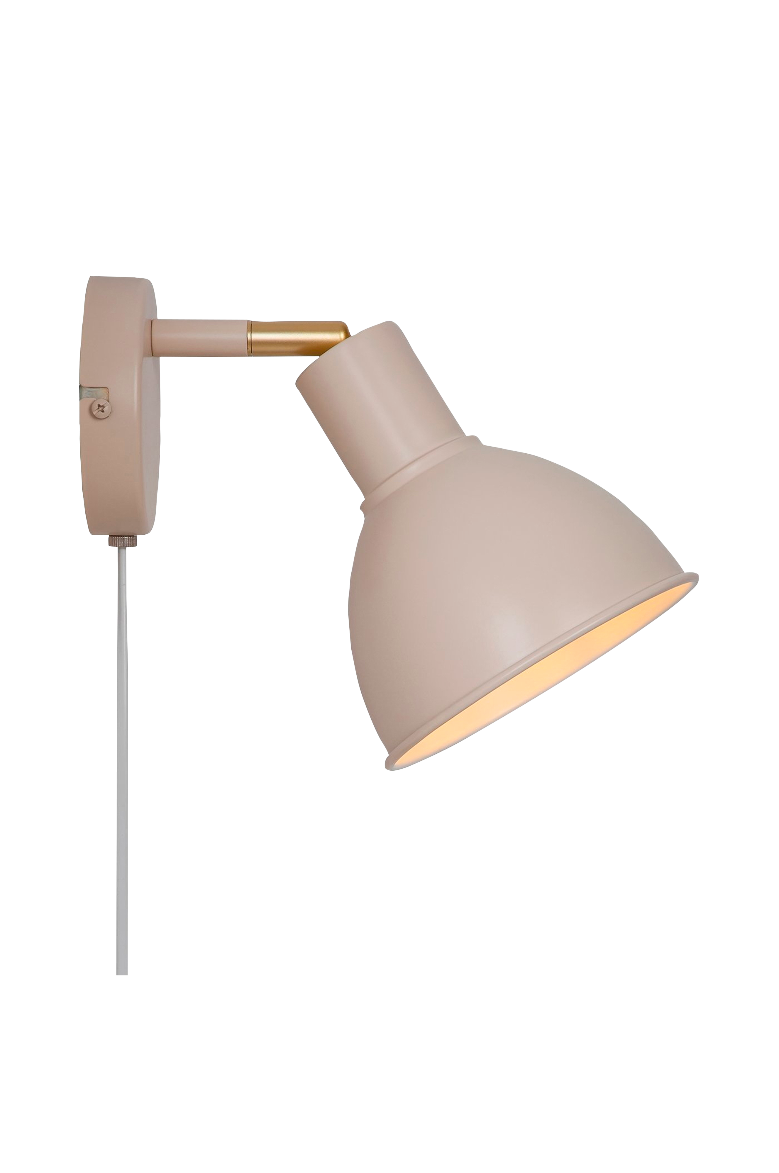 Elegant retro-vegglampe laget av metall. Lampen har et dreibart hode og en bryter på ledningen.