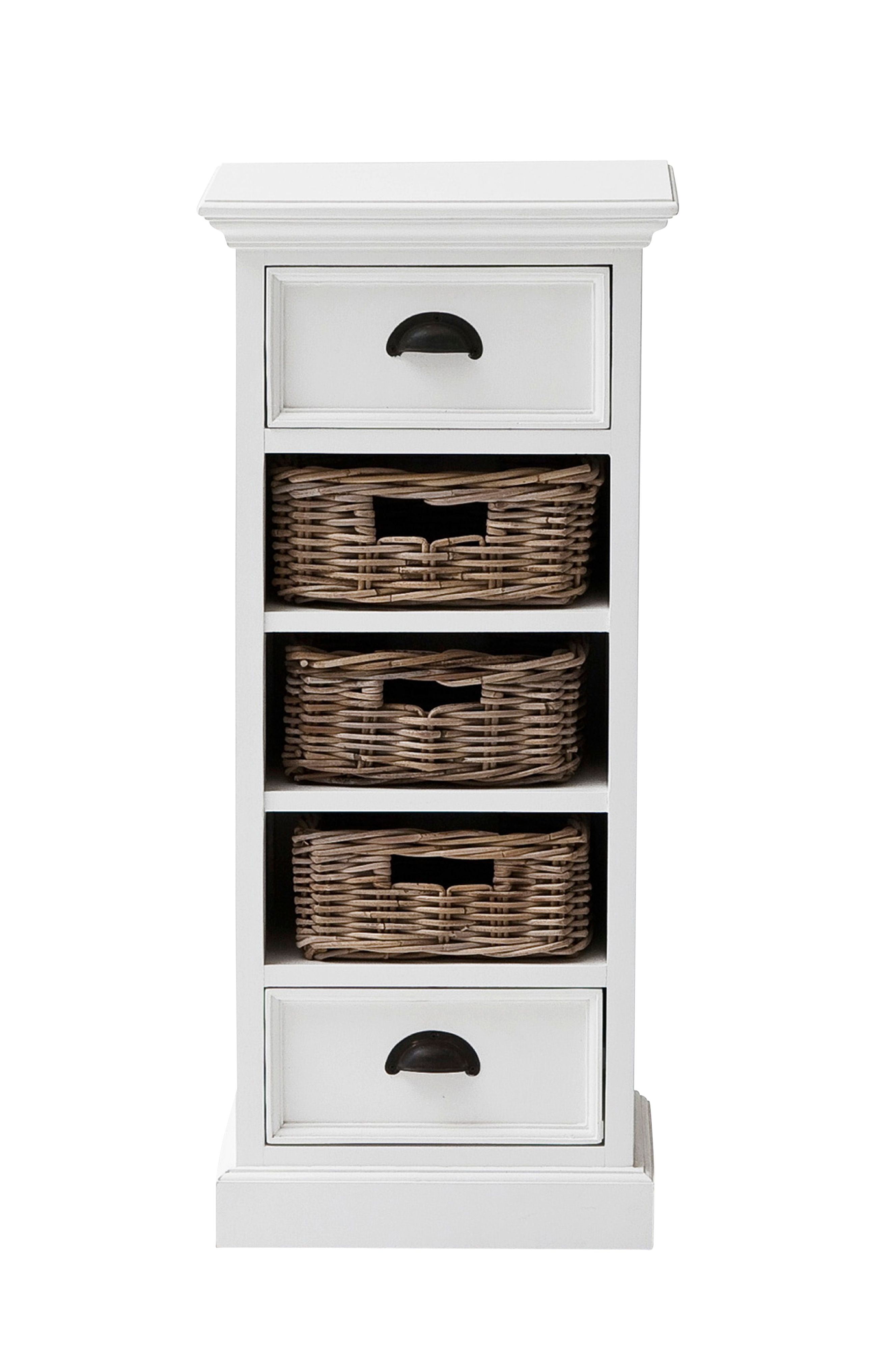 De smart utformede tårnoppbevaringsenhetene er både vakre og praktiske i en sjarmerende innpakning. Håndflettede kurver i kubu-rotting, plassert på hyller, danner en fin kontrast til skuffene og gjenspeiler utseendet som halifax -kolleksjonen er kjent for. Utsmykkede lister og beslag i antikk messing gjør utseendet komplett.