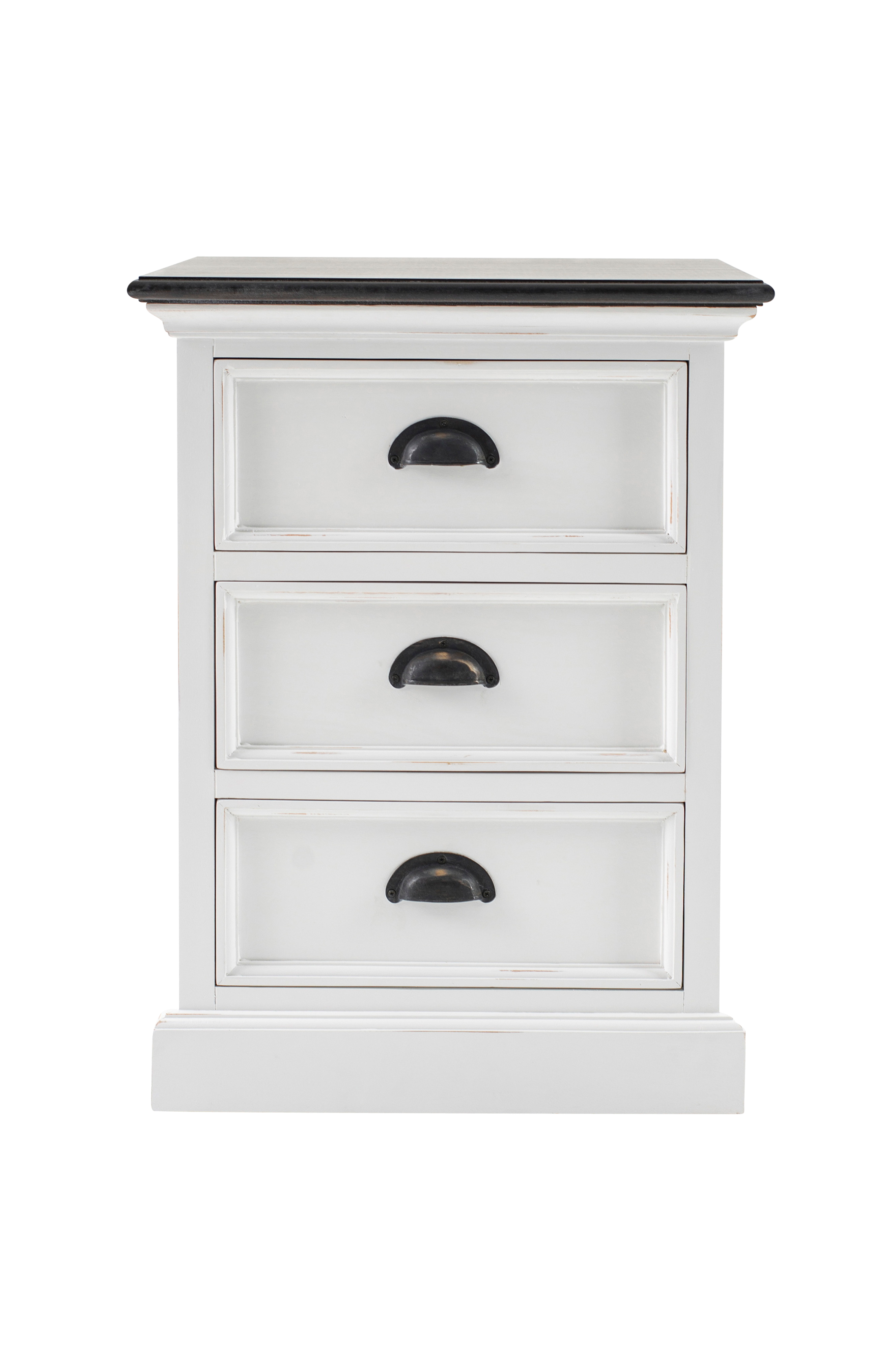 En seng føles fortapt uten et nattbord. Ta for eksempel dette bordet med tre skuffer. Det er designet for å kunne stå i en høyde som passer til både høye og lave senger. Det er også slankt, slik at det får plass i trange rom. Det gir en kompakt avlastningsflate for vekkerklokke og bok. Og den har tre skuffer som gir ekstra gjemmesteder for sokker eller pyjamas.