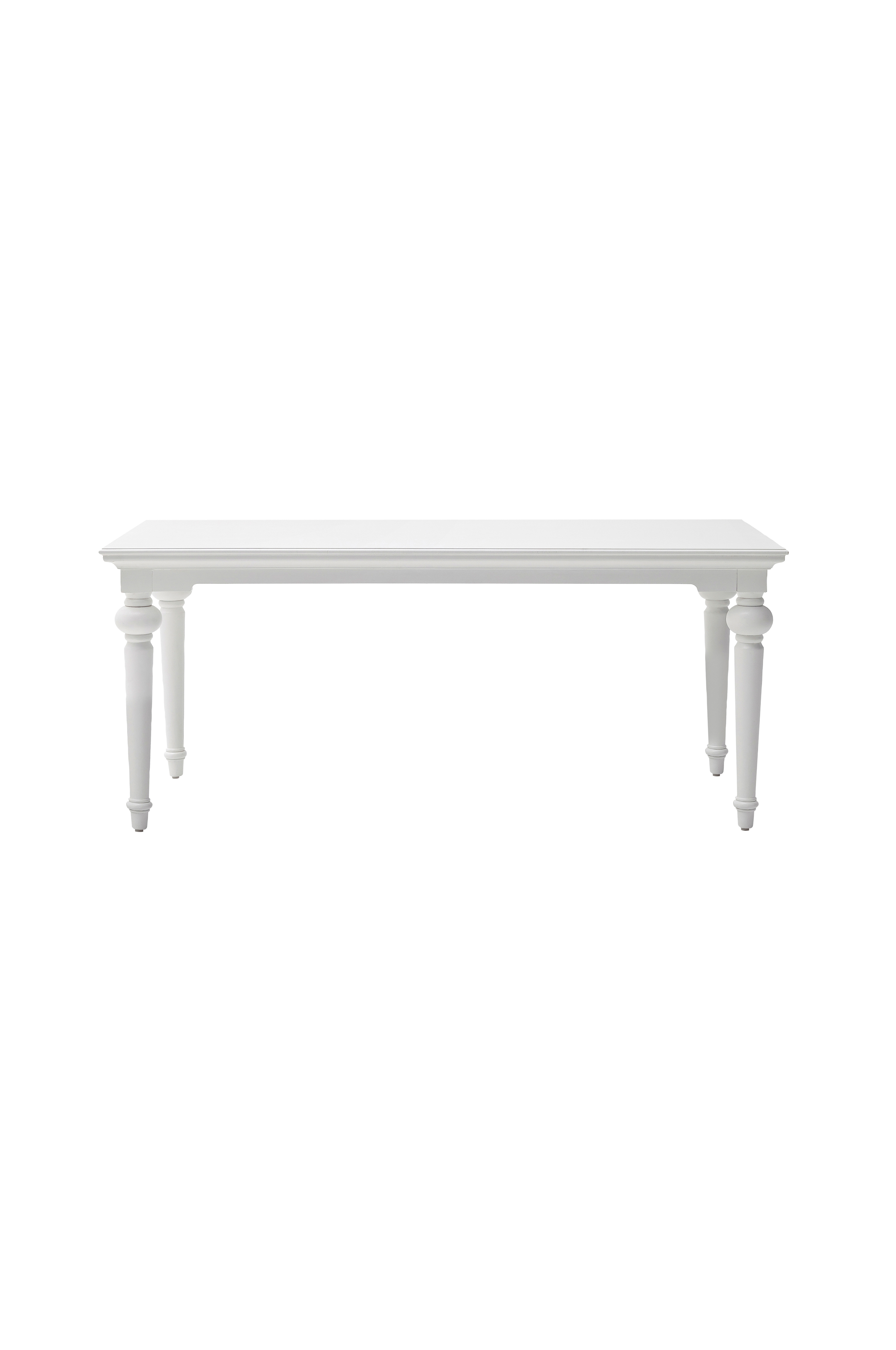 Den lyse fargen og den blanke finishen på dette bordet bidrar til å få et lite rom til å føles større. Under den slanke, hvite bordplaten ligger fire trompetsvingede ben som smalner av mot bunnen, slik at bordet føles slankt og sofistikert. Et stiltips: Bruk gjerne mønstret servise for å sette farge på middagen, eller ta i bruk den evige trenden med hvitt på hvitt ved å bruke marmordækkeservietter.