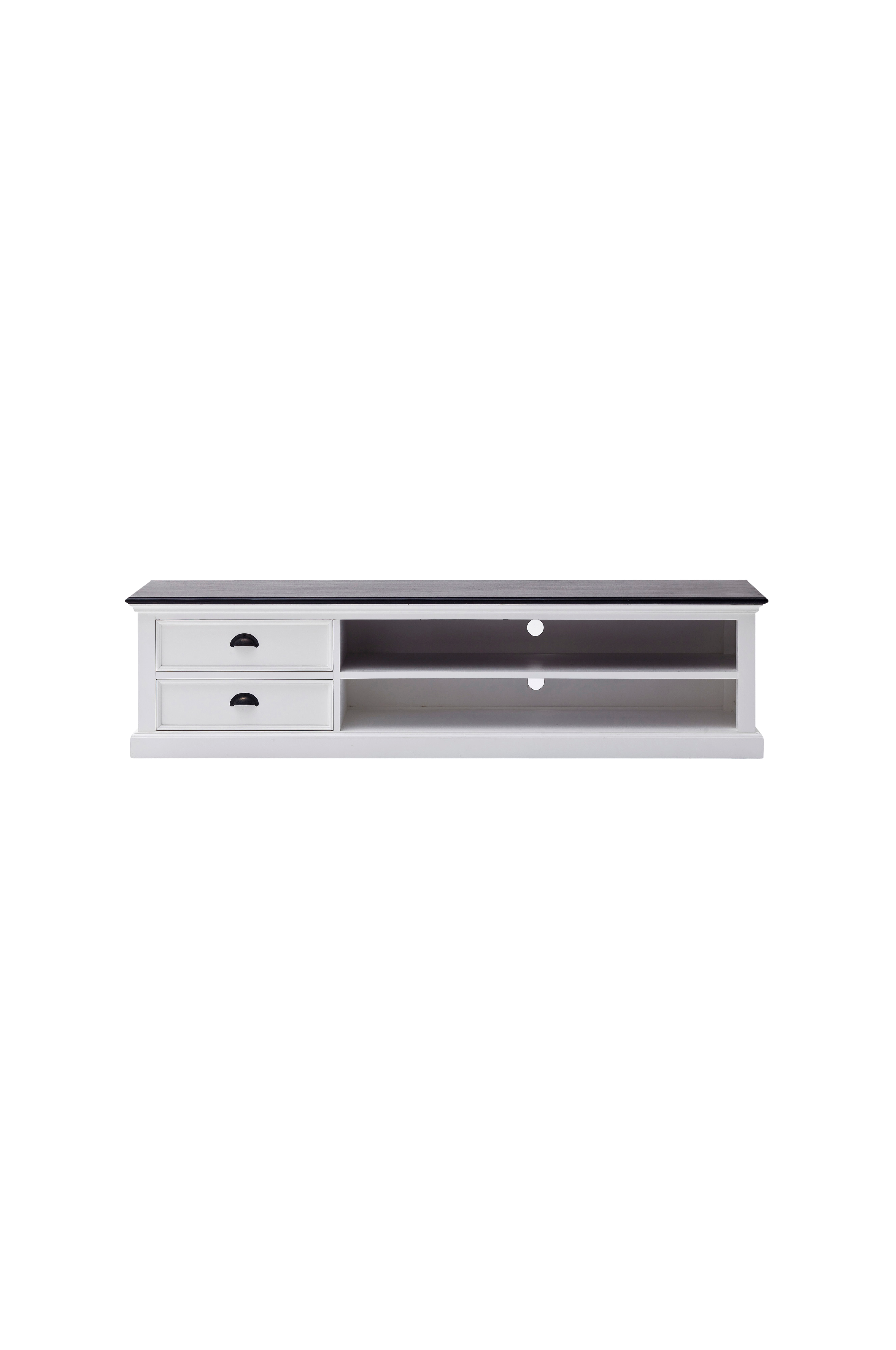 Elegant og tiltalende. Underholdningsmøbelet halifax contrast tar utgangspunkt i tradisjonelle elementer, som de klassiske konturene og bruken av massivt tre, men fornyer dem på en elegant og stilren måte. Ryddig og oversiktlig. Skjemmende ledninger hører fortiden til. Kabelhåndteringssystemet sørger for at ledningene holdes under kontroll. Det er slutt på knuter og, enda viktigere, ingenting som står i veien for underholdningsenhetens utseende. Størrelsen er viktig. Lite plass? Velg den kompakte versjonen. Har du mye plass? Velg den store versjonen. Det ligger i detaljene. Hvor skal vi begynne? Alle delene i halifax contrast -kolleksjonen har en klassisk silhuett med en støpt sokkel i bunnen og en utbrettet gesims på toppen. De antikverte beslagene er i form av tradisjonelle kopphåndtak. Og så har vi de tidstypiske panelene og de skråstilte skuffefrontene.