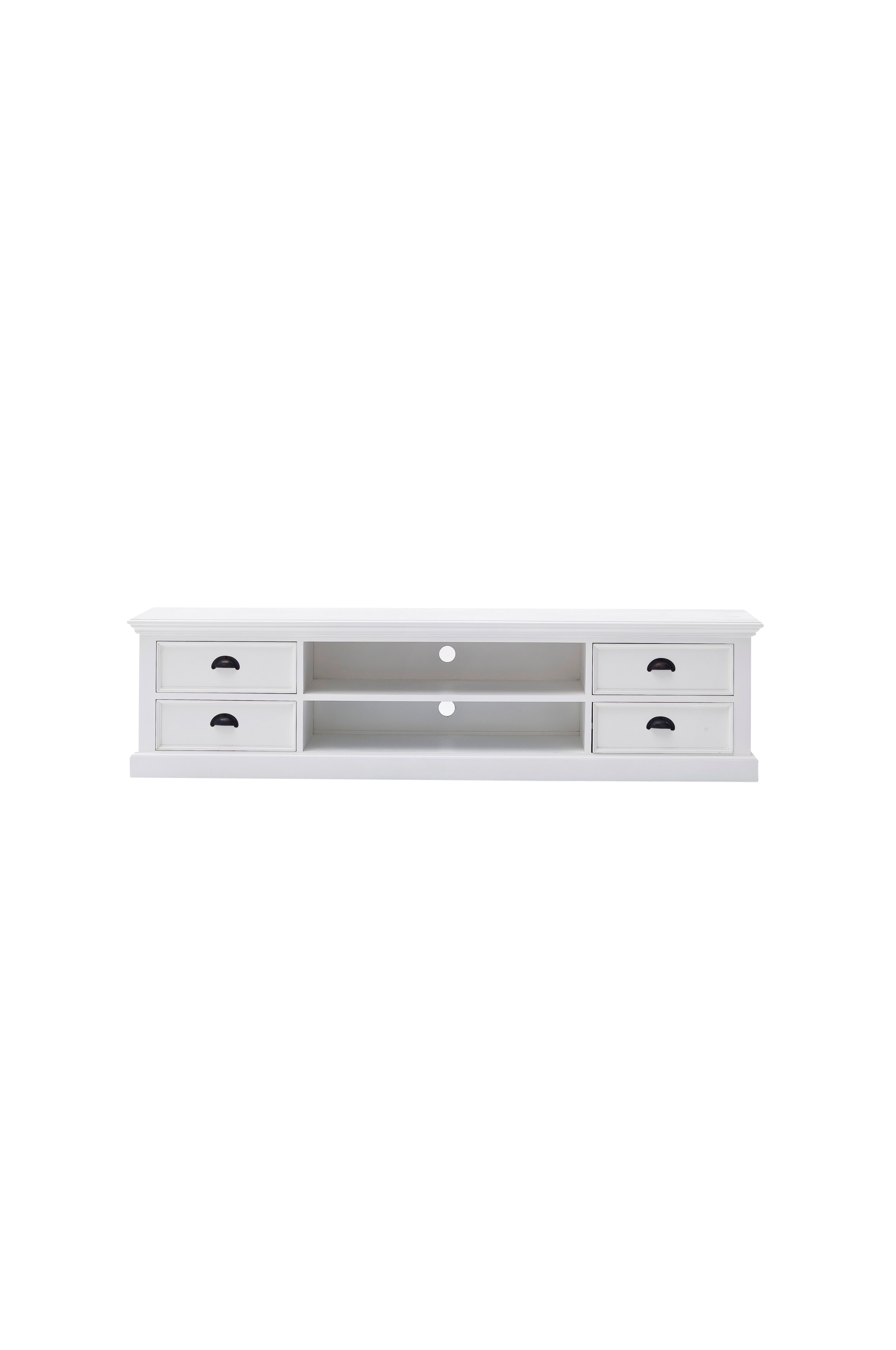 Underholdningsmøbler kan se tunge ut, men halifax endrer på dette ved å bruke en silkemyk maling i lysende hvitt og elegante detaljer i treverket. Resultatet er et friskt og rent design som ikke trenger seg på, men som definitivt vil bli lagt merke til. Og med den enkle kabelhåndteringen vil utseendet aldri bli ødelagt av uregjerlige ledninger. Stiltips: Ved siden av mediesakene dine kan du pynte toppen med spennende coffee table-bøker, en lampe eller innrammede bilder.